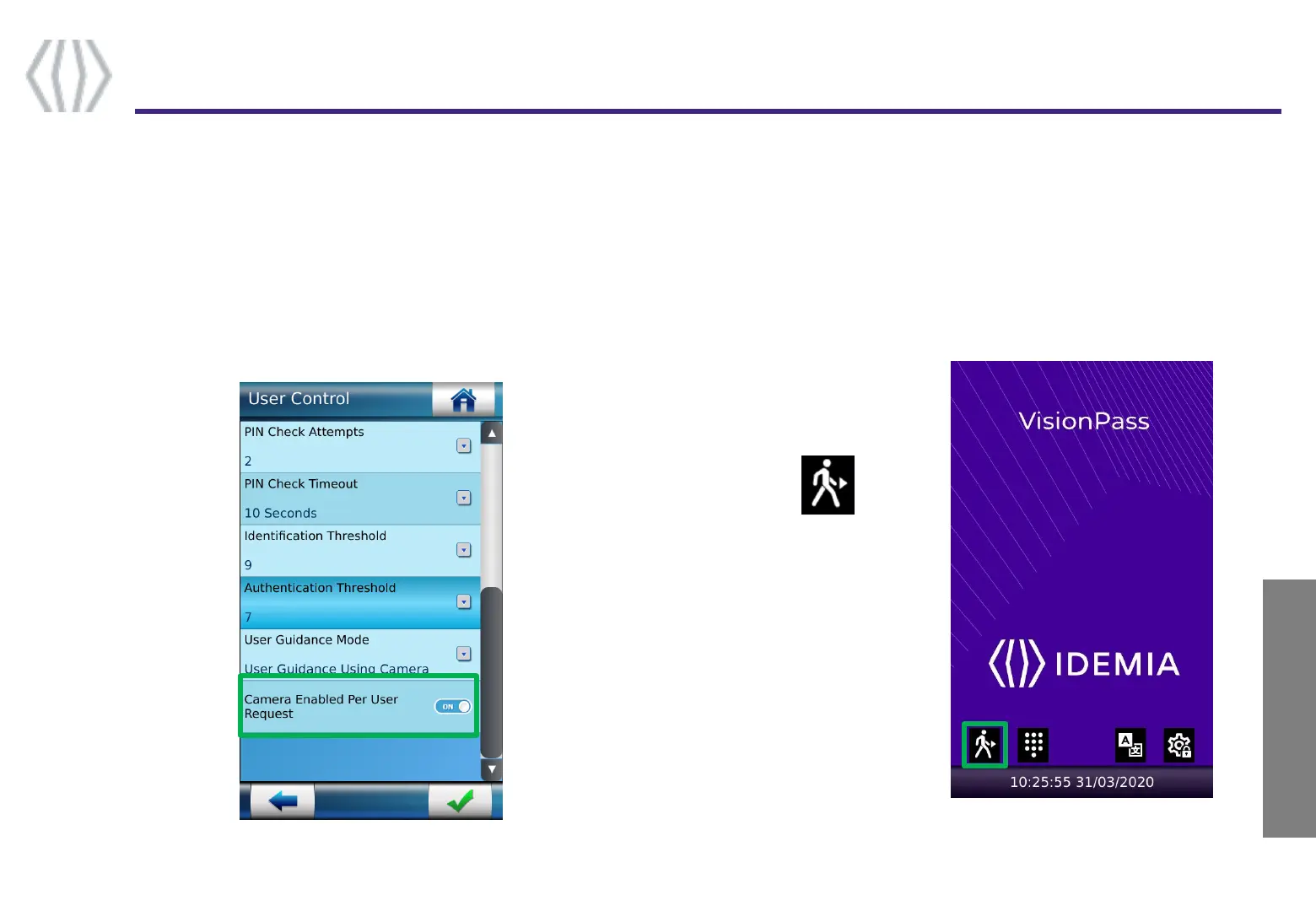 By default, VisionPass will react when a user enters in the intention area, and will start facial acquisition as soon as a