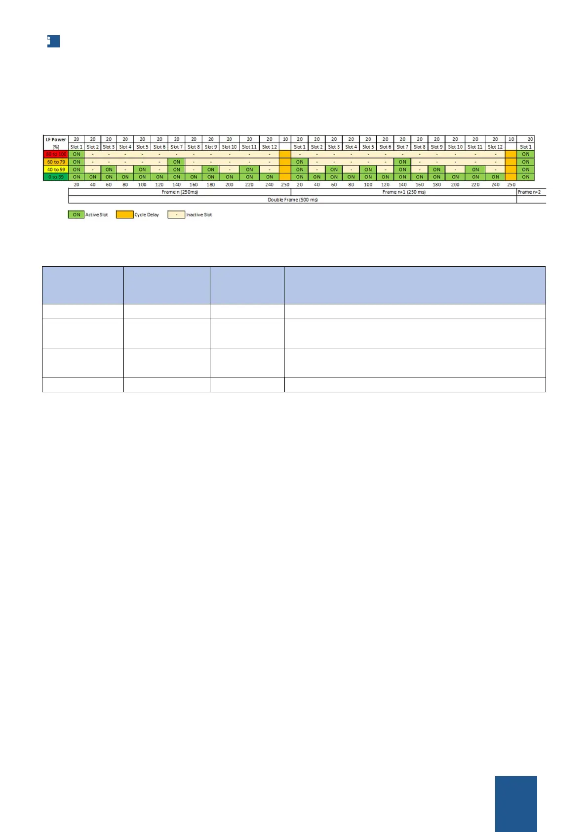 80% to 100% 500 ms 250 ms Only 1 slot per double frame is active