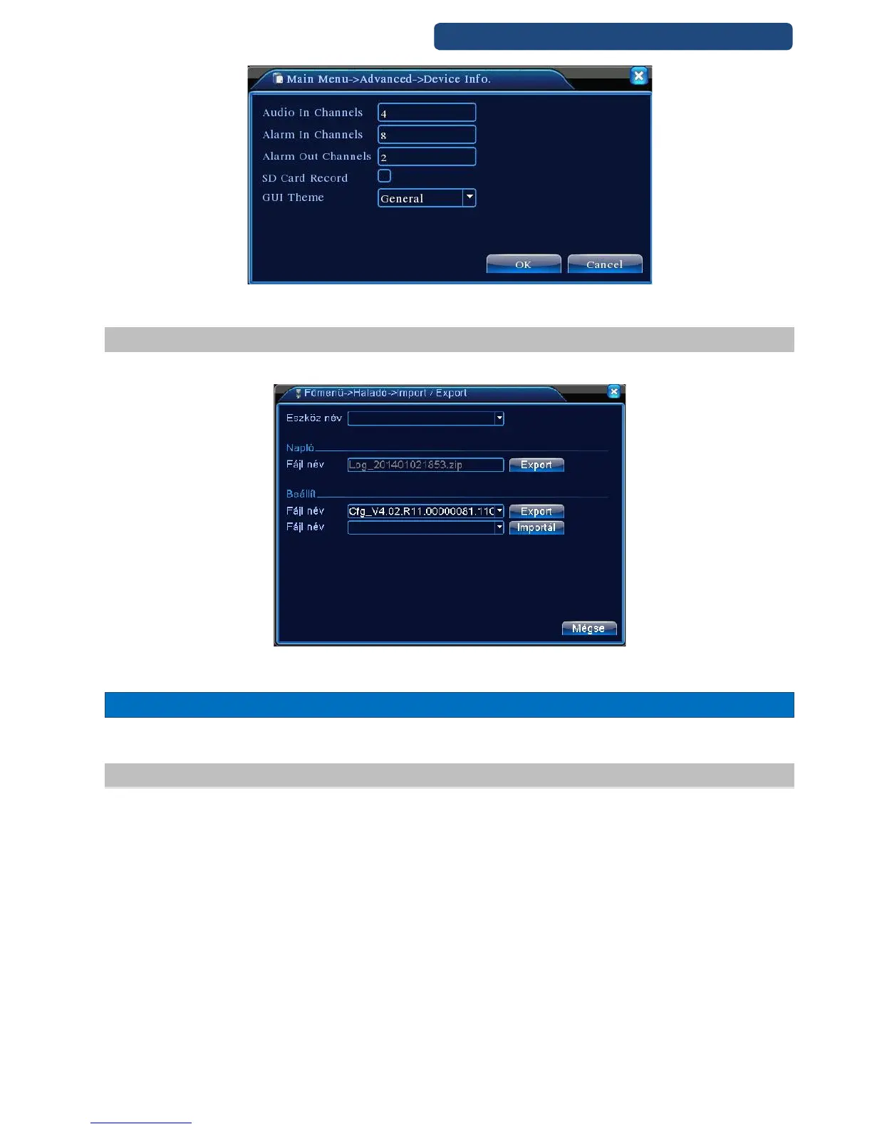 It is possible to import or export settings from the recorder to a pendrive or harddrive.