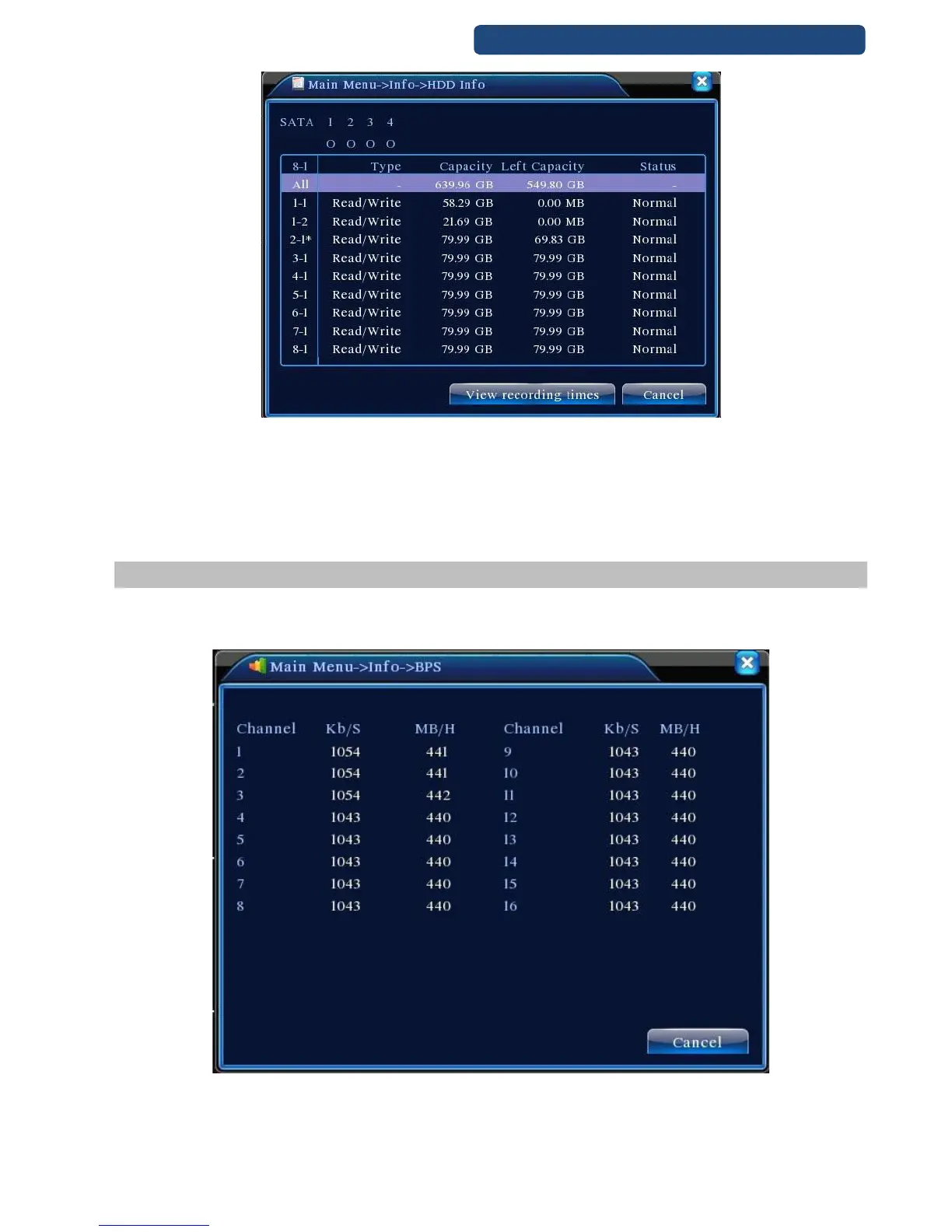 Display the code stream(Kb/S)and hard disk capability (MB/H)in real time. It displays as the wave