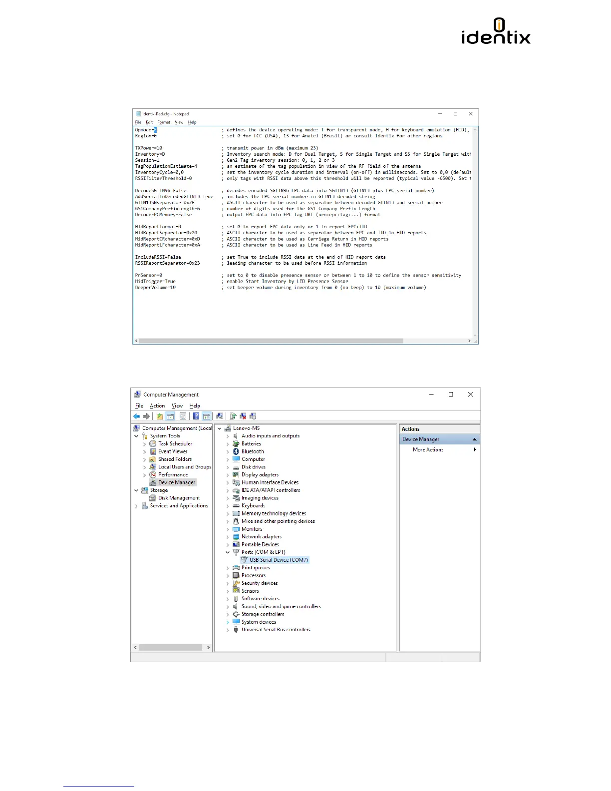 2. Identify the virtual COM port that Windows assigned to the MiniPad rPad device using the