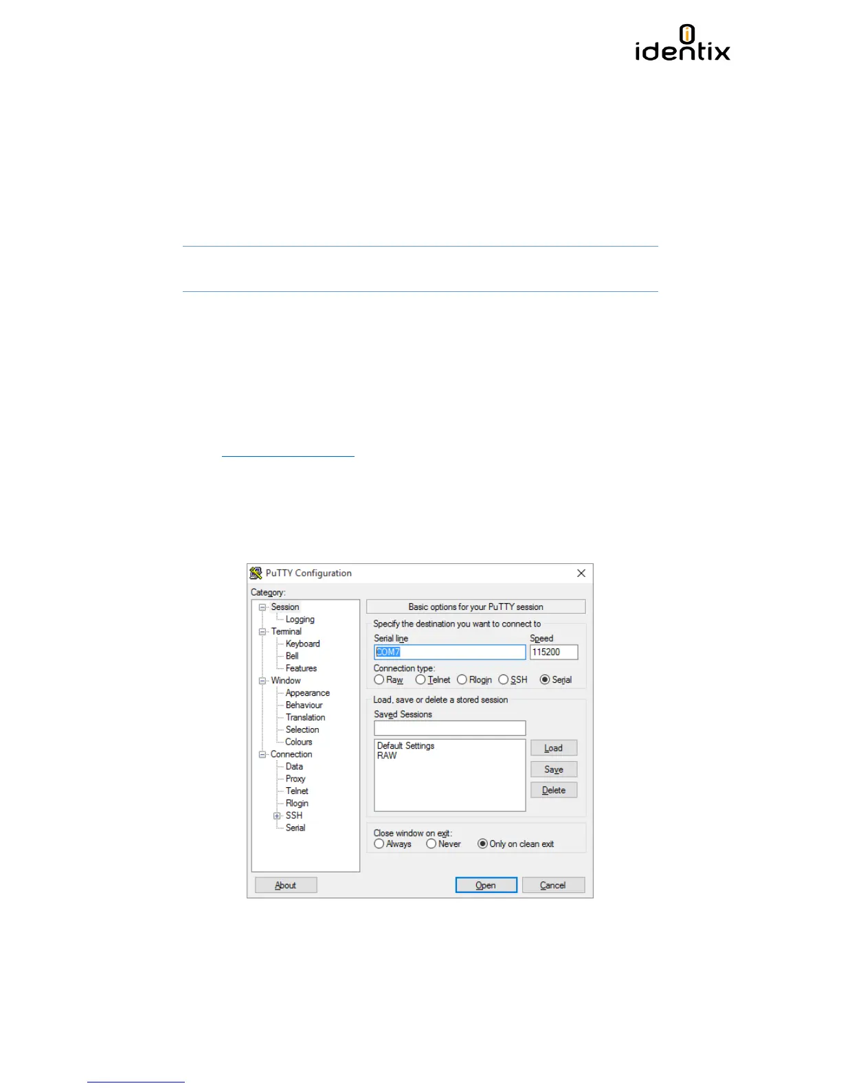 b. Execute Putty.exe and a screen similar to the following one will be displayed.