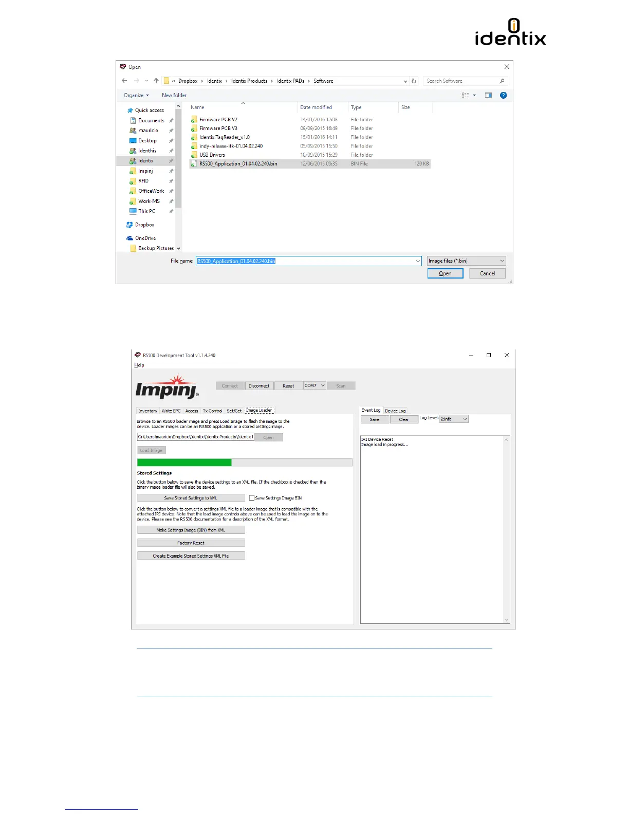 8) After selecting the desired RFID SIP Firmware file, press the” Load Image” button and the