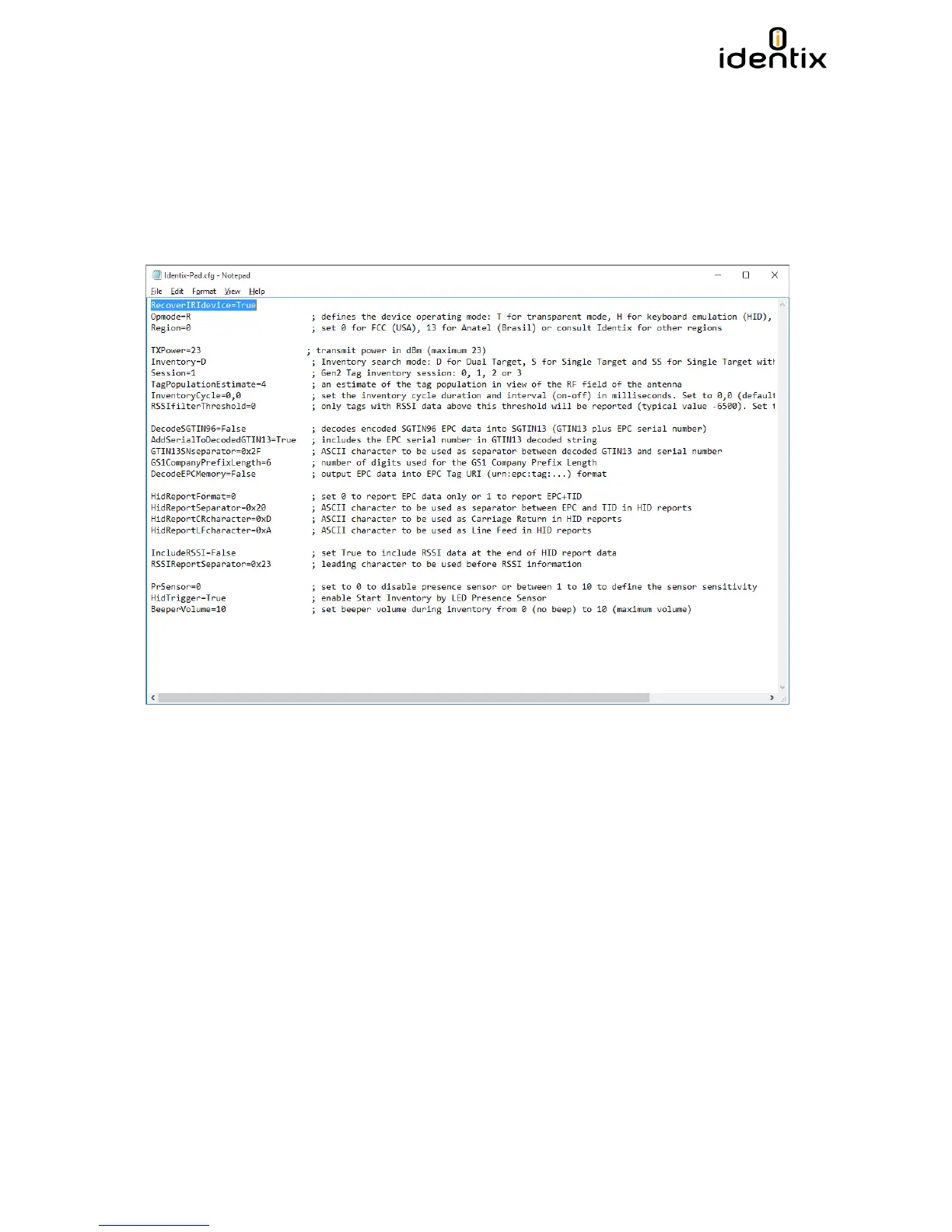 Open the Identix-Pad.cfg file located inside the “Identix” drive. Insert on the first line of the