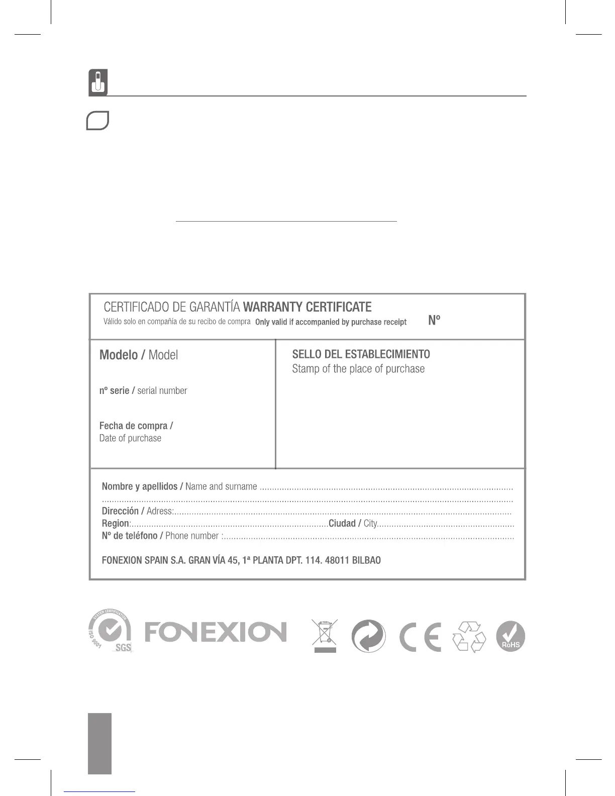 recibo de compra. Guarde su recibo de compra, es su garantía. Sin embargo, esta garantía