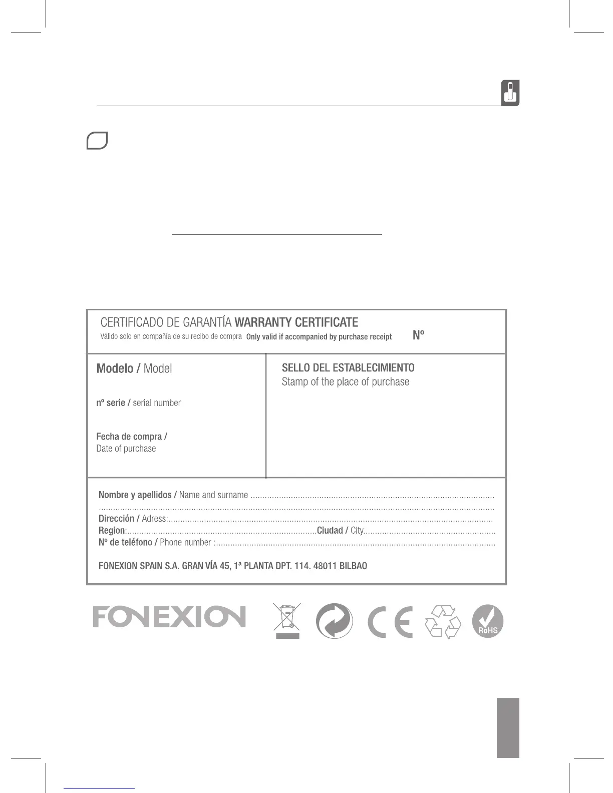 recibo de compra. Guarde su recibo de compra, es su garantía. Sin embargo, esta garantía