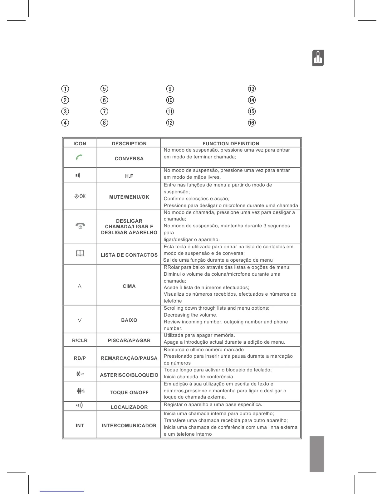 números,pressione e mantenha para ligar e desligar o