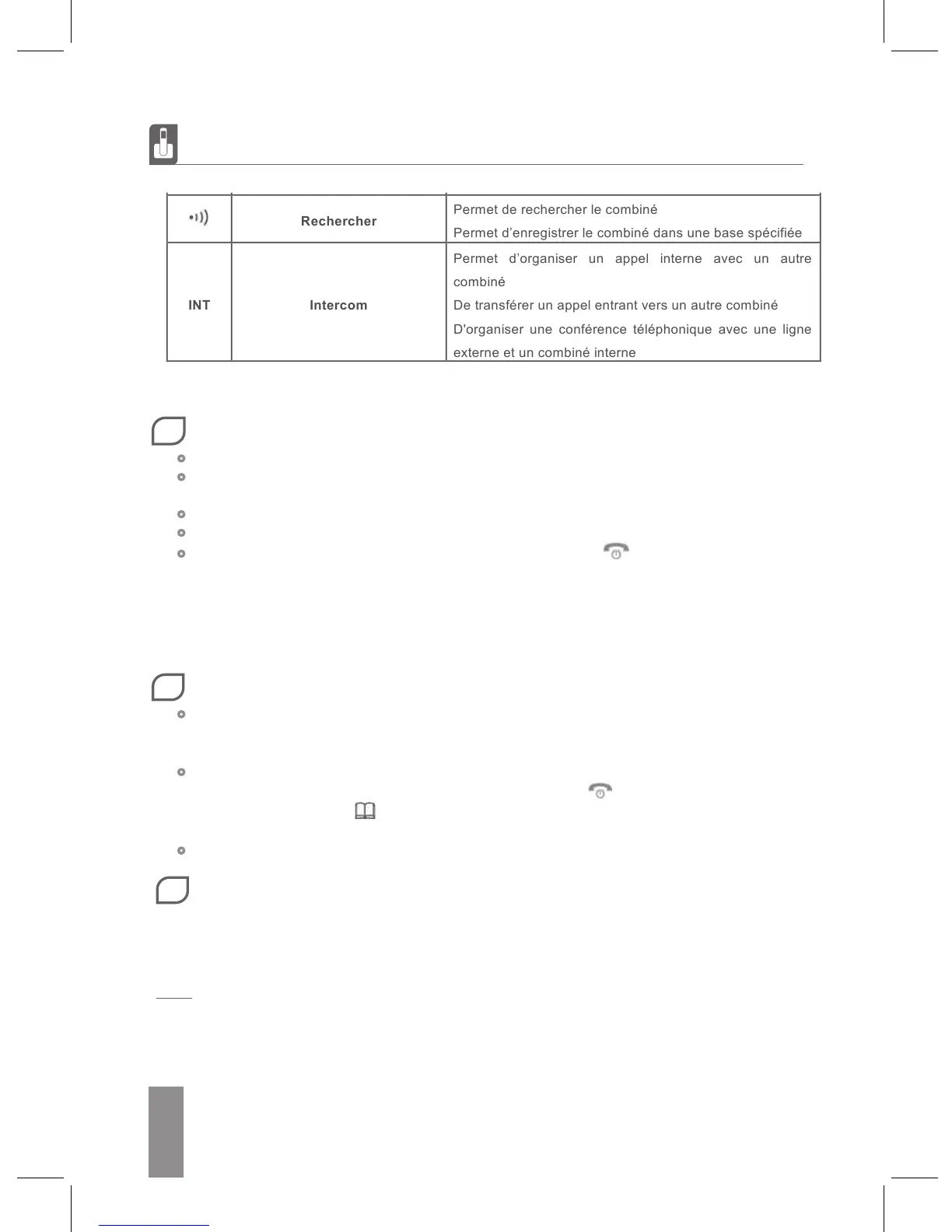 Chaque téléphone possède son répertoire indépendant avec 150 entrées maximum. Appuyez
