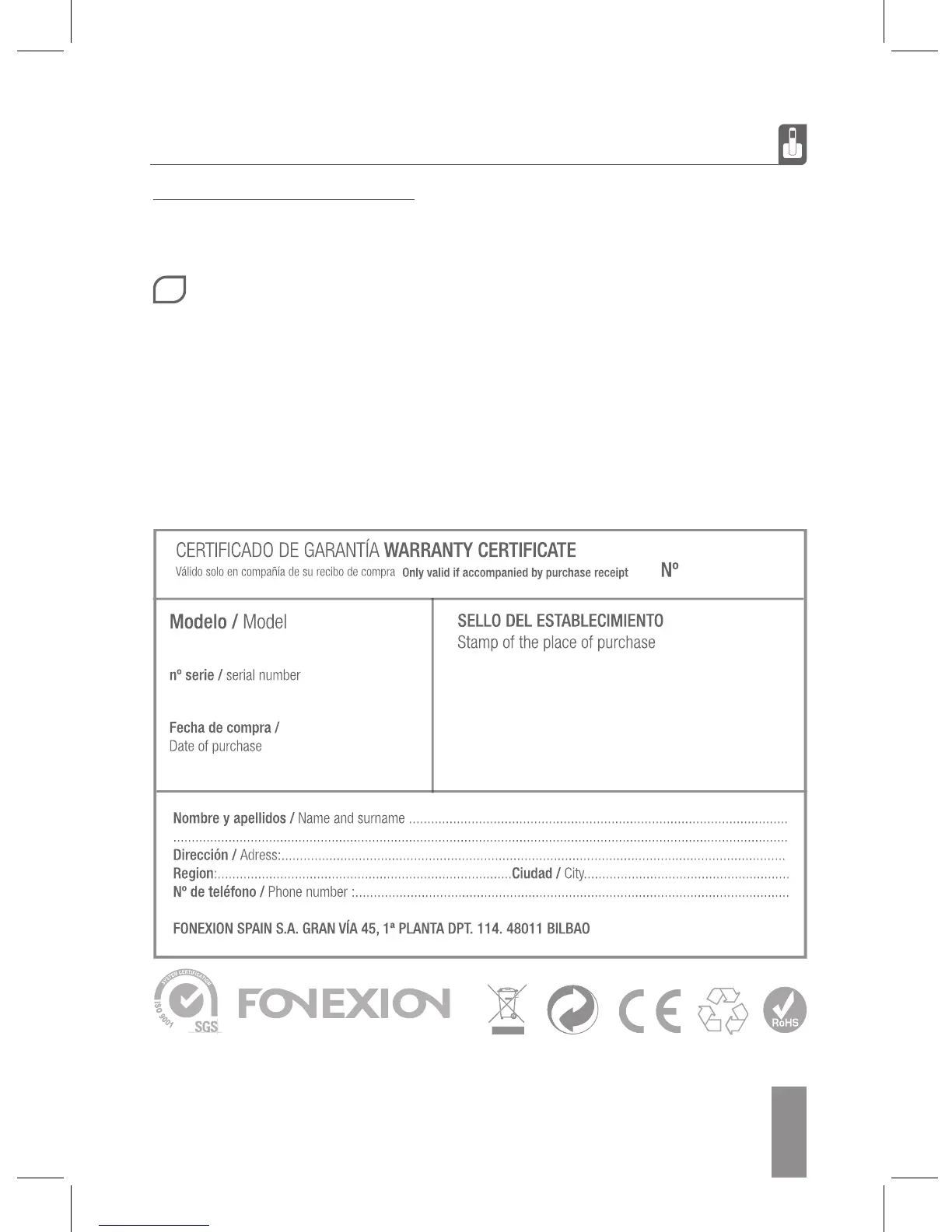 Conservez votre reçu d´achat, est votre garantie. Toutefois, cette garantie ne couvre pas les