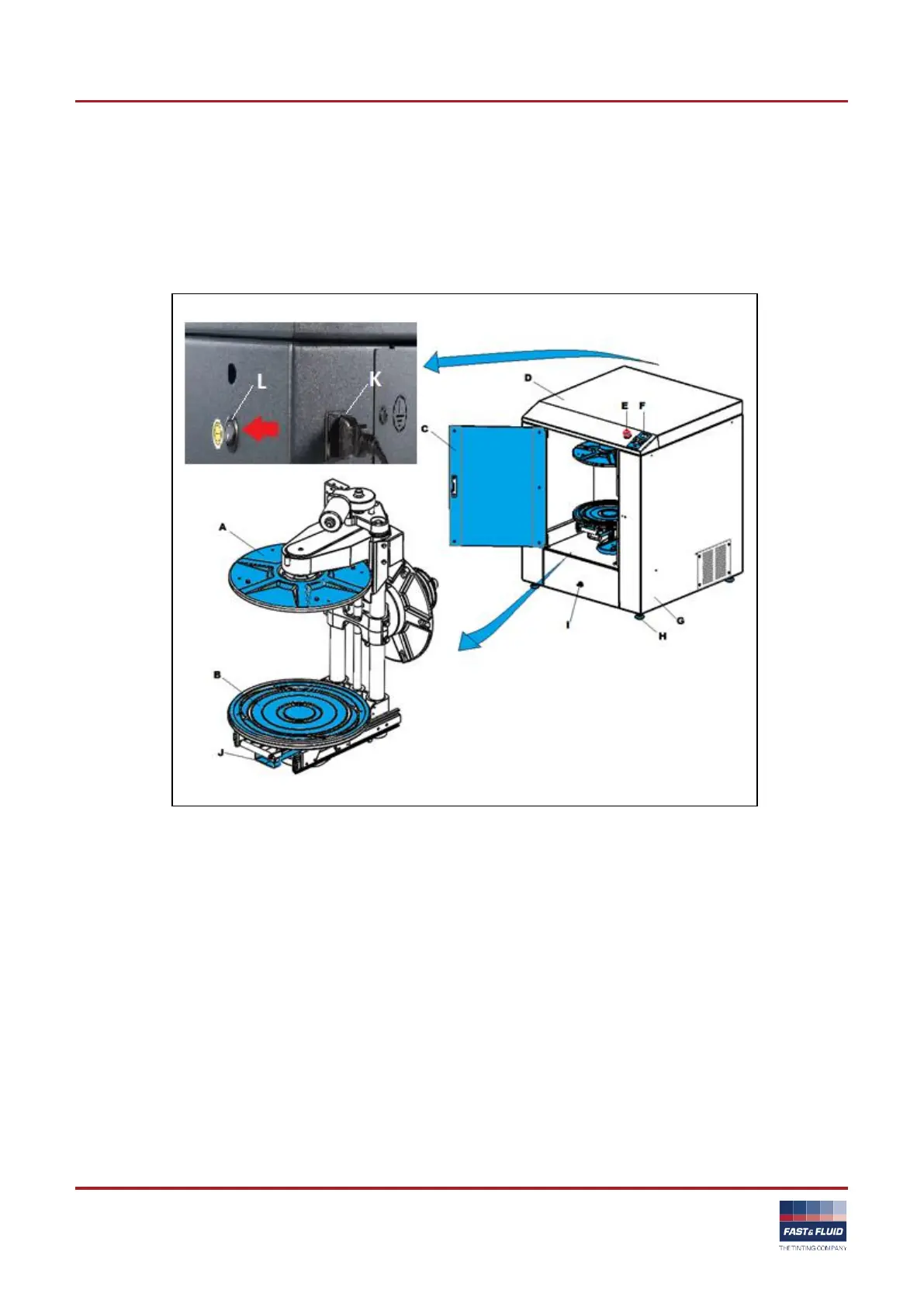 A: Can Plate (Top) E: Emergency Switch I: Drain Orifice