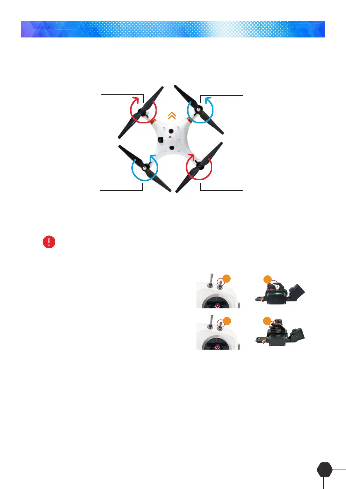 Pay attention to distinguish the head and tail of the drone by the red mark on the arm of the quadcopter