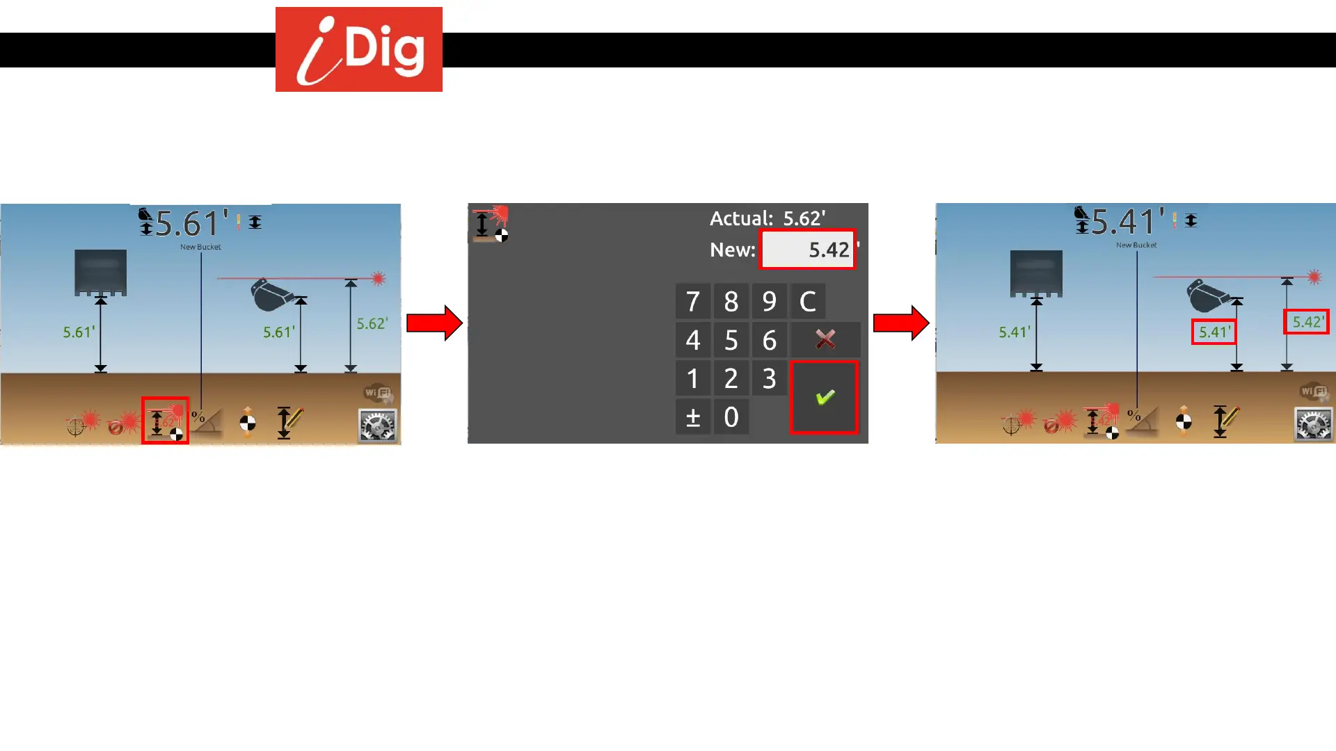 • The Bucket Height reference and the Laser