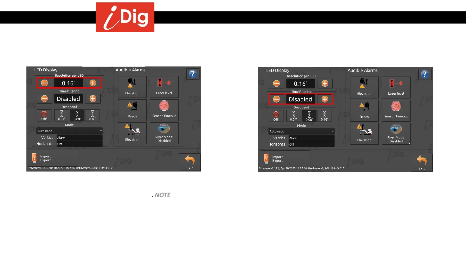 is set to ± .04’ (= .08”) the minimum possible resolution