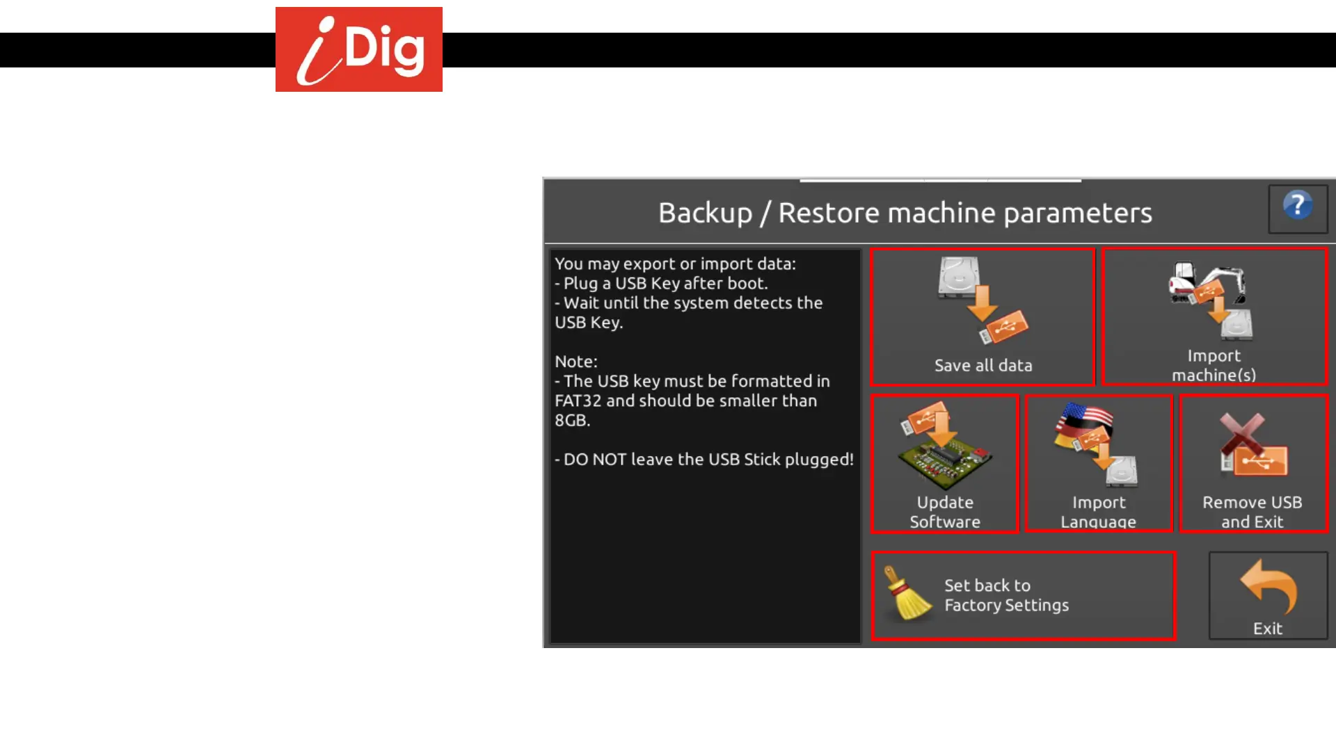 the USB stick titled “iDig Touch Calibration Data”. Be