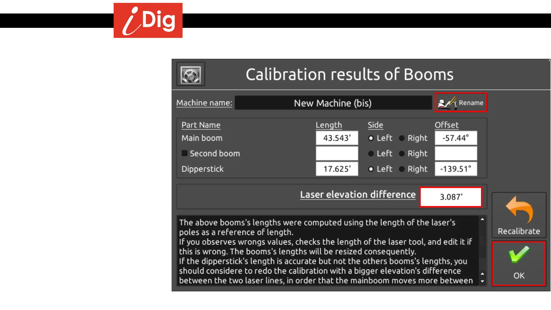 Installation Procedures – Main Boom & Dipper Stick Calibration