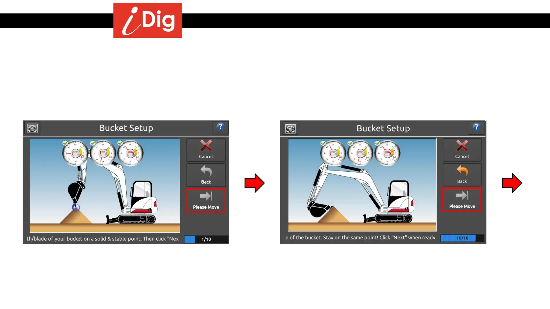 changing the angle of the bucket. There are ten steps to this process. Note the counter on the bottom right hand side of the