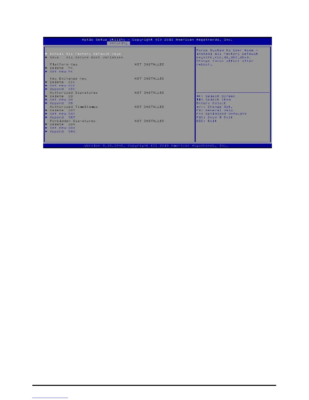 Key-exchange Key (KEK), Signature database (db), and Revoked Signatures (dbx). The