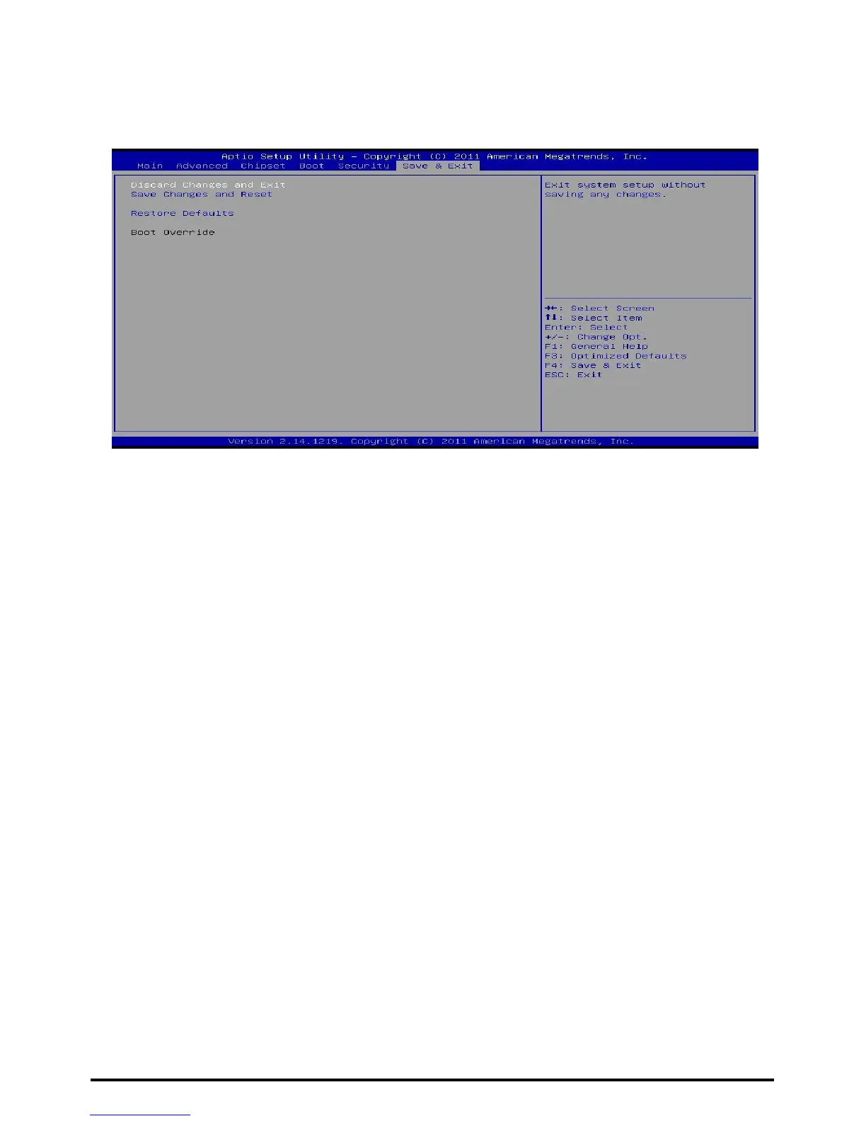 This menu allows you to load the optimal default settings, and save or discard the changes
