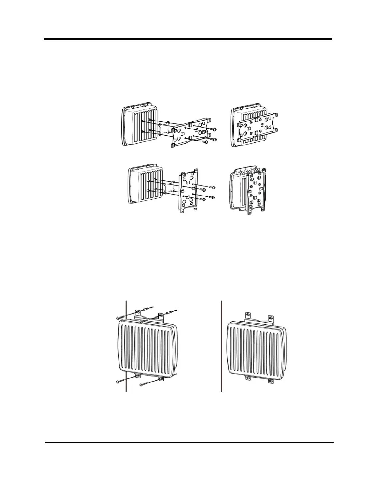 To mount the X1 Outdoor Satellite Router to a wall, mount the assembly to the wall using the