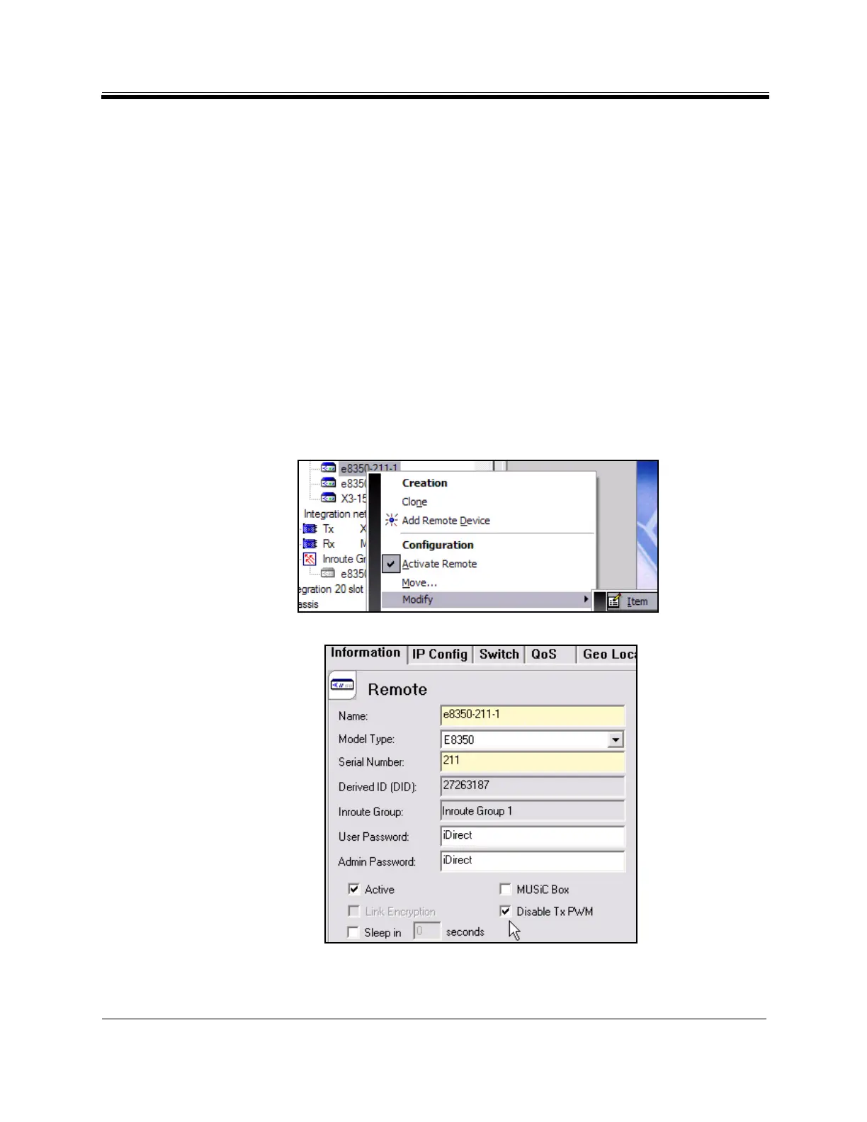 Figure 61. iBuilder Remote Information Tab: Disabling Tx PWM