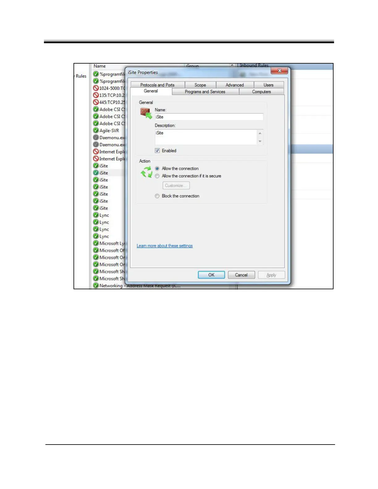 iDirect evolution x5 - Figure 1. Allowing Isite in Windows Firewall