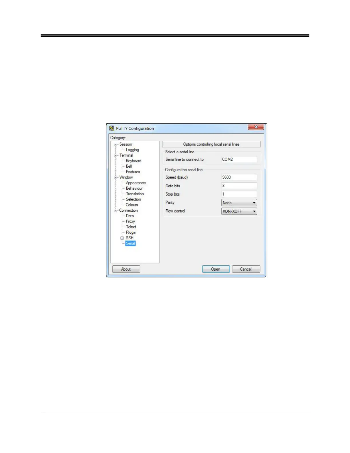 Figure 8. PuTTY Configuration: Serial Parameters