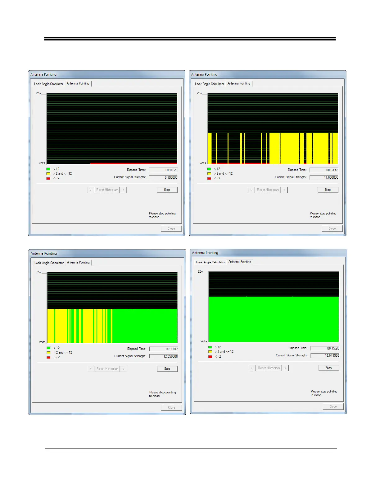 Figure 23. Antenna Pointing Histogram and Current Signal Strength