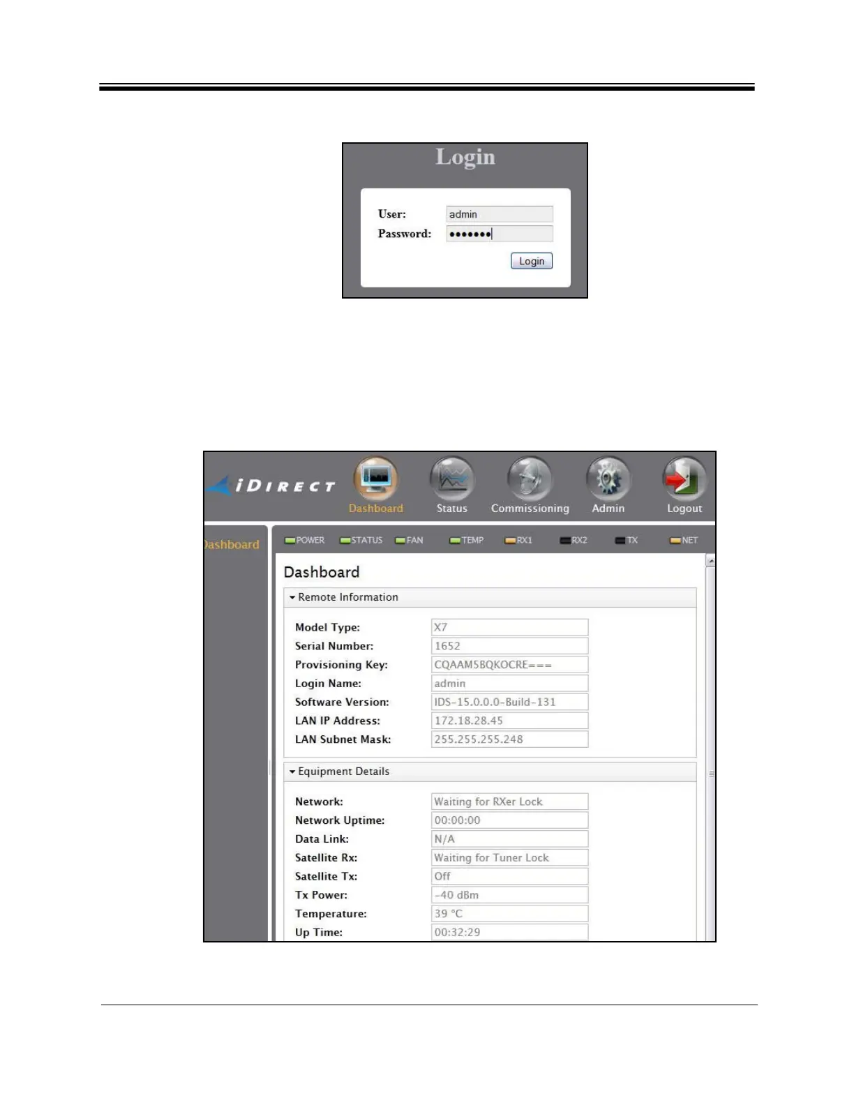 Note: The factory default admin password is iDirect. However