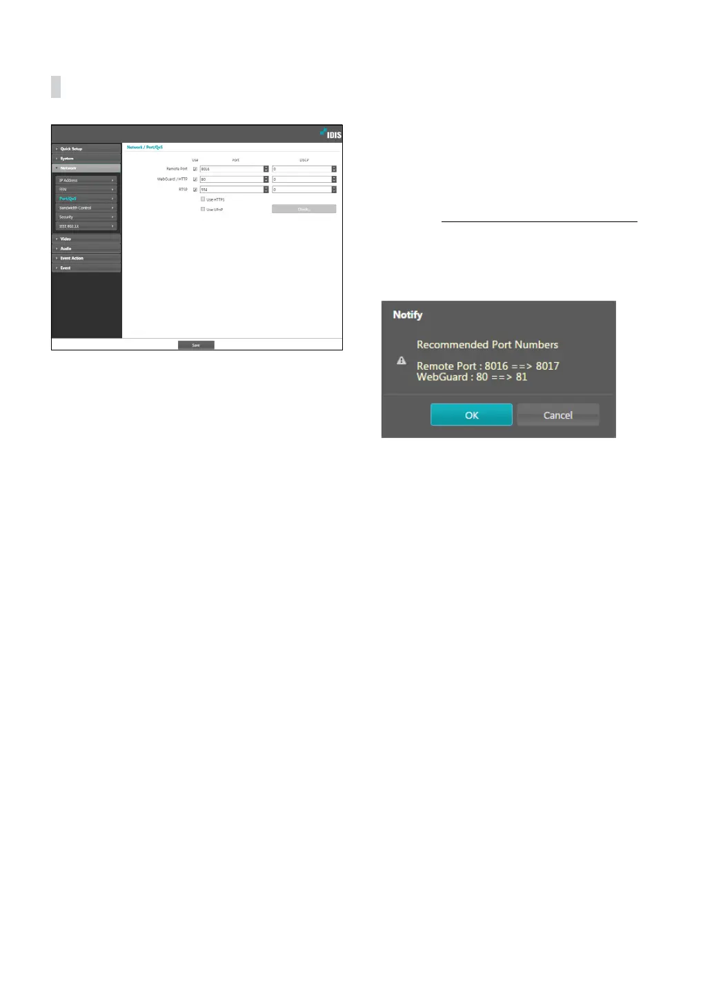 be disabled. By enabling IDIS Web and RTSP ports, you