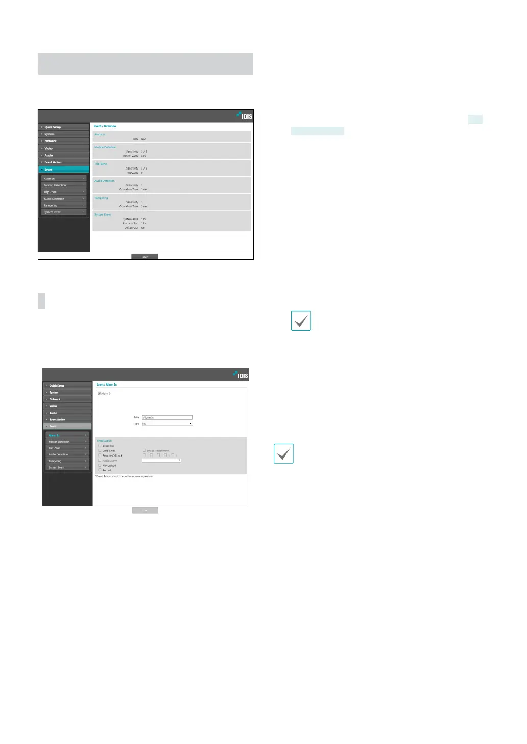 Idis DC-D3233RX-N - Event; Alarm in