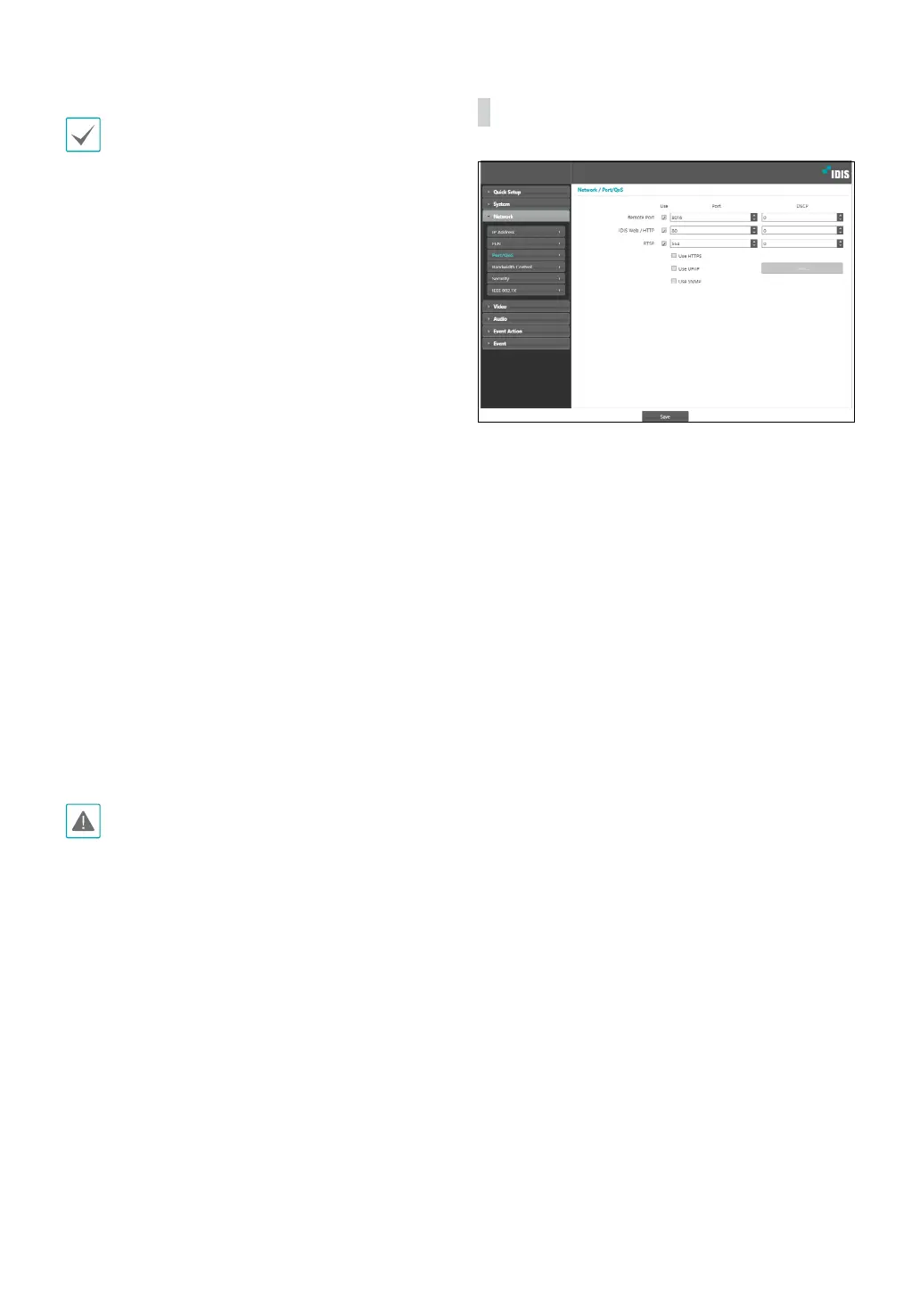 be disabled. By enabling IDIS Web and RTSP ports, you