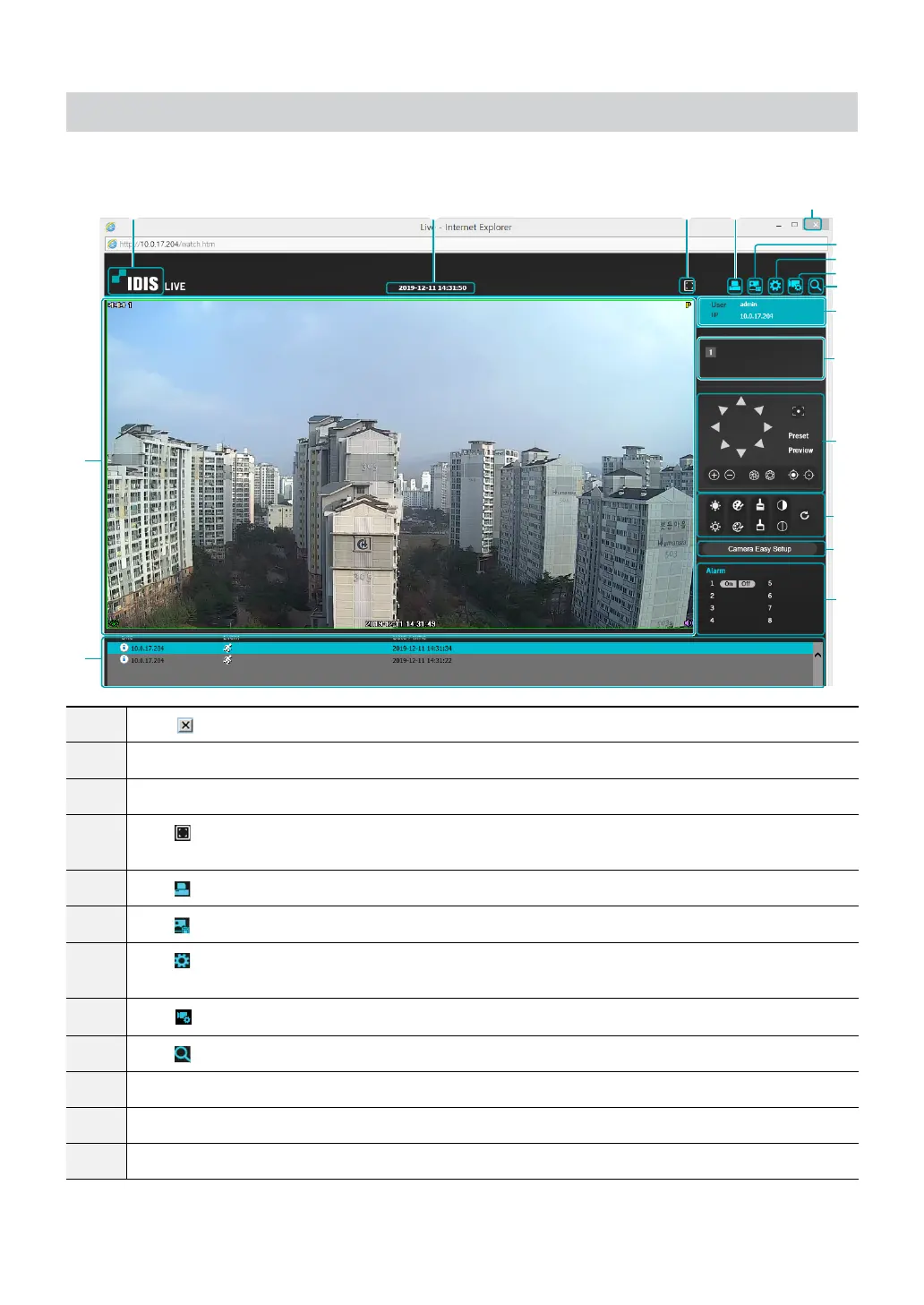Place the mouse pointer on the logo to check IDIS Web's version.