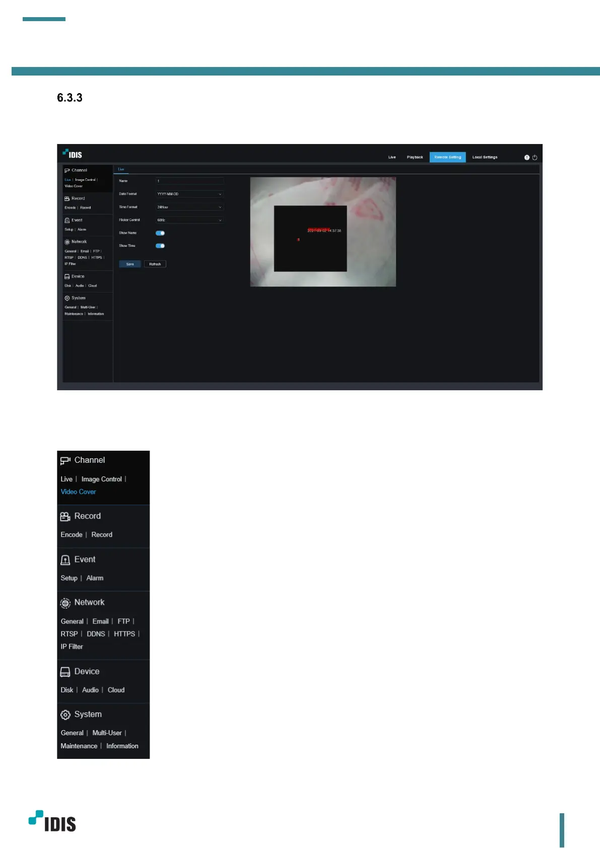 Idis DC-D4511WERX - Remote Setting Tab for Camera Configurations