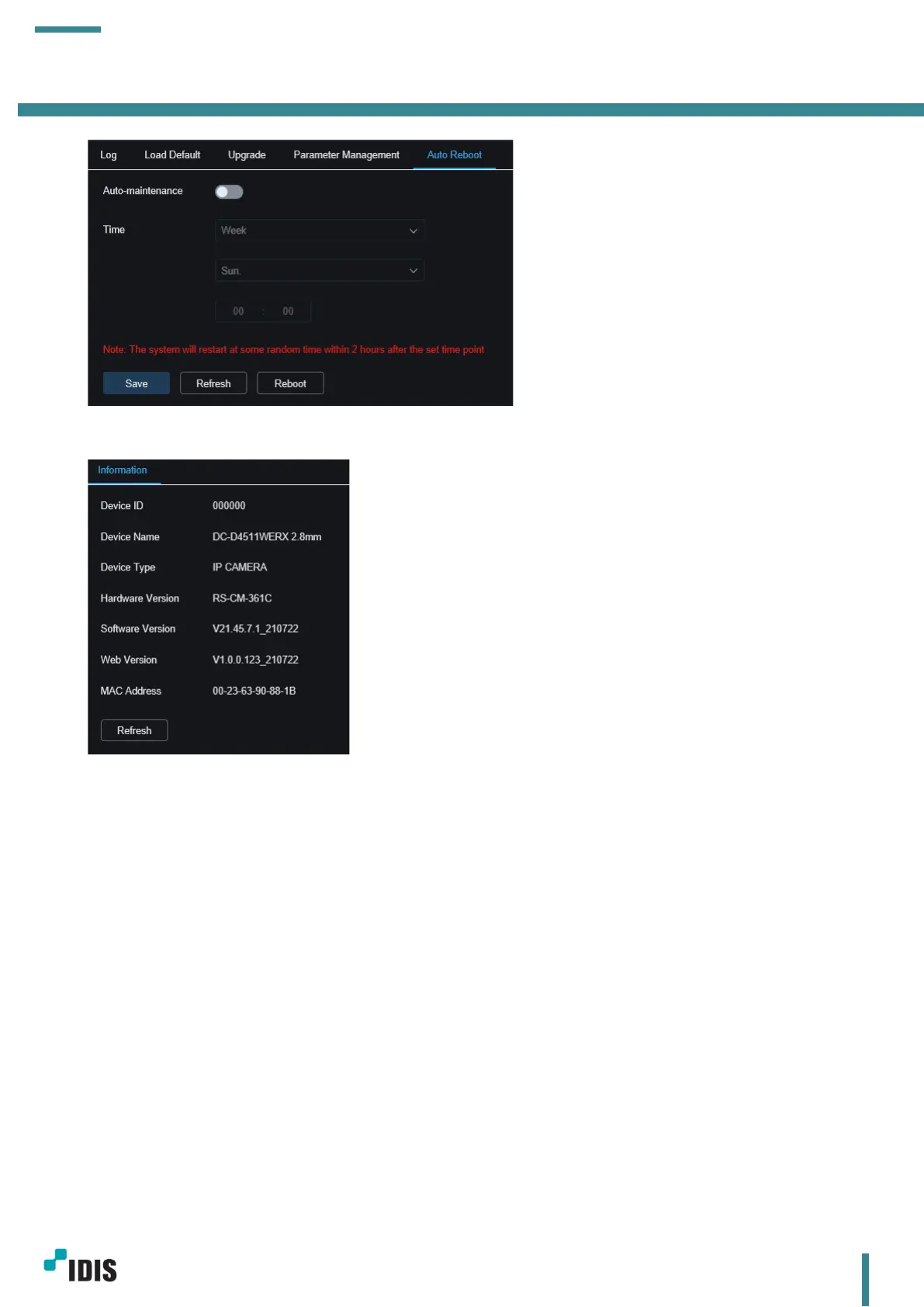 Idis DC-D4511WERX - System Auto-maintenance Scheduling; System Information Display