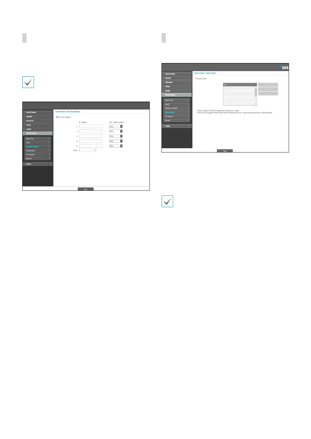 • Not supported from the IDIS Web program.