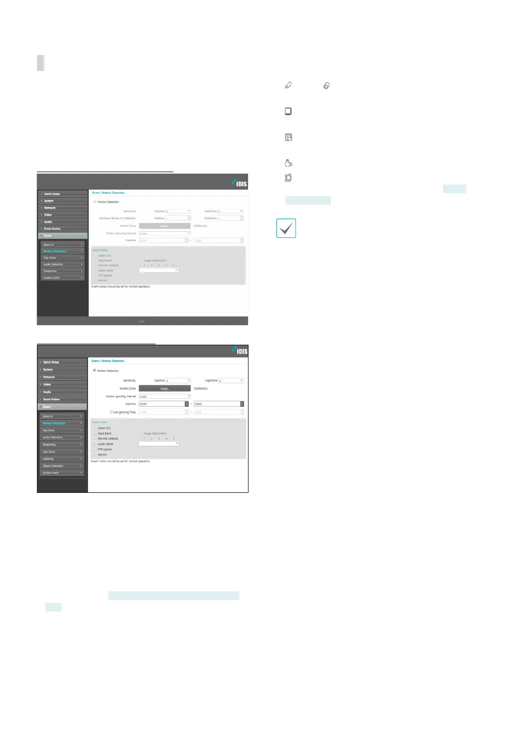 event settings. With motion detection event enabled,