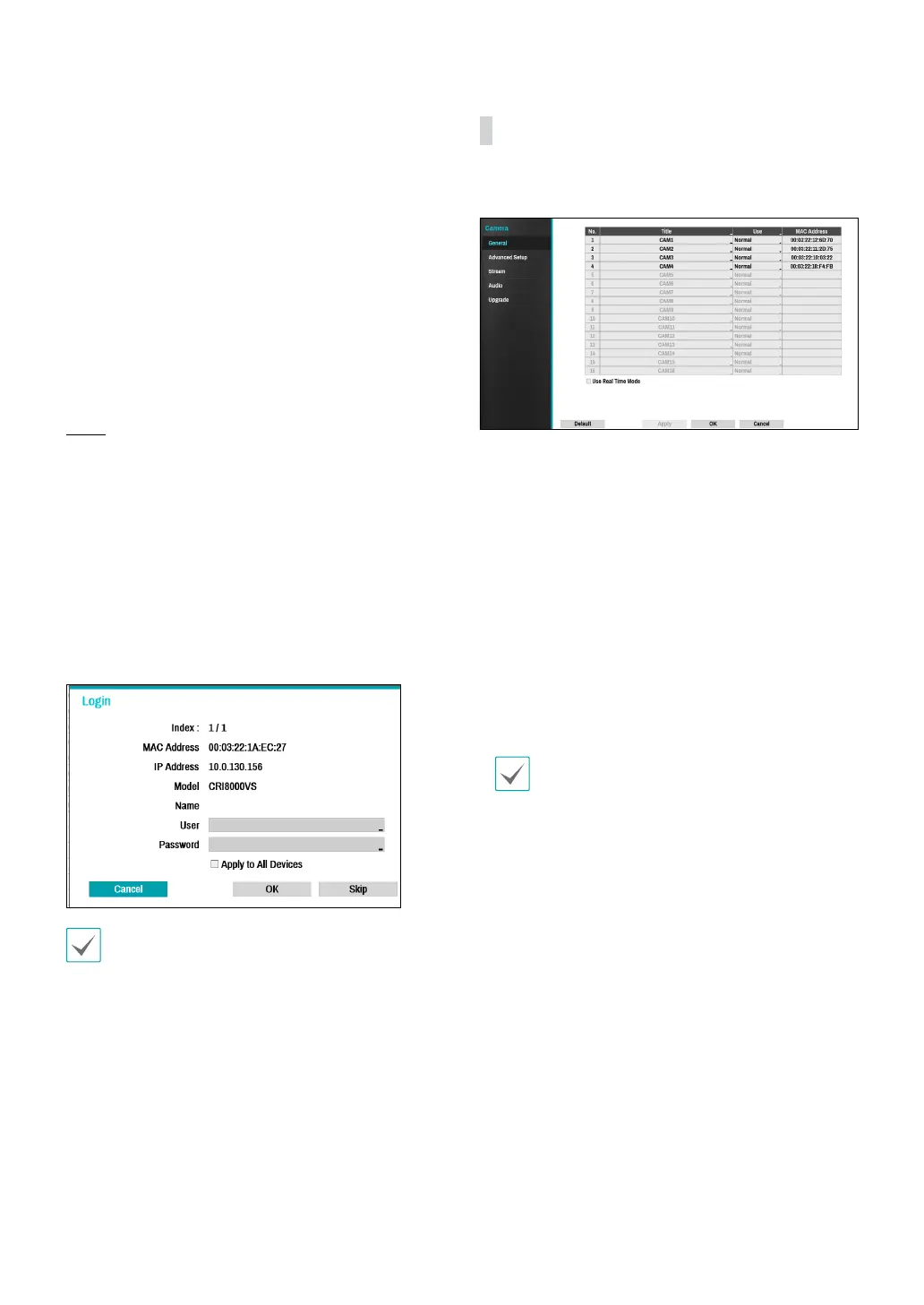 ● MAC Address: Displays the scanned camera’s MAC