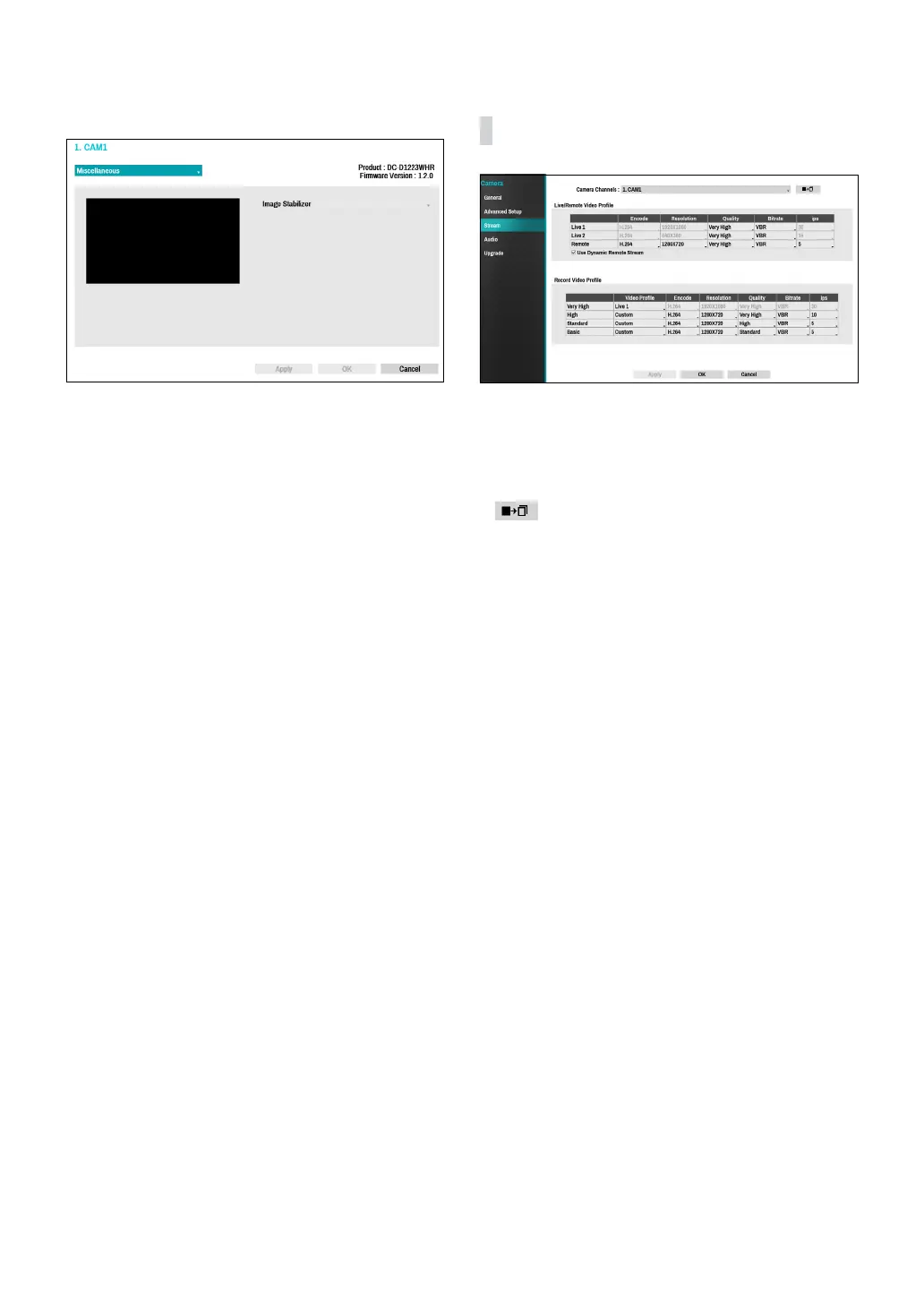 ● Video Prole: Select Live 1, Live 2, Remote, or