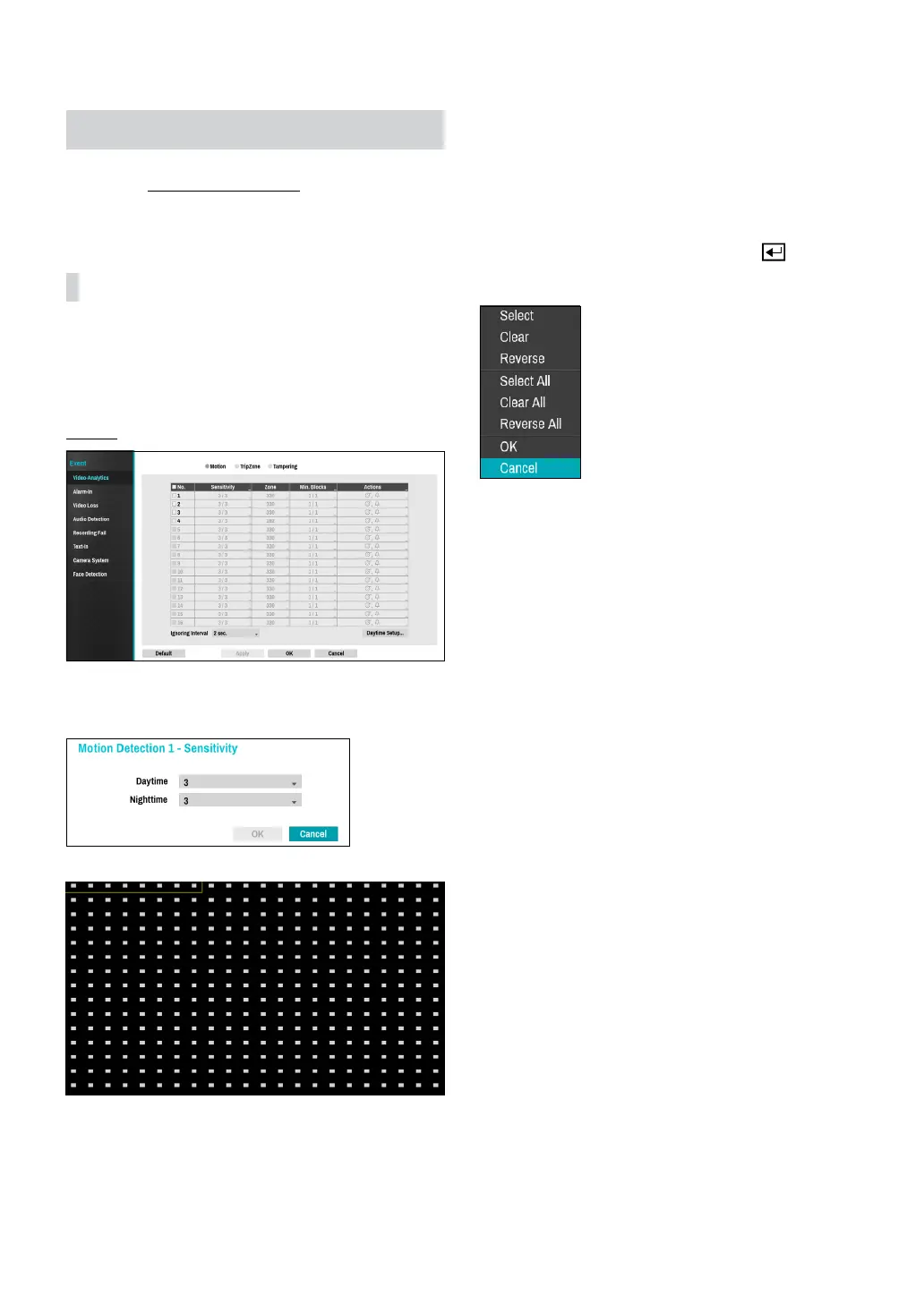 ● Zone: Dene the motion detection block.