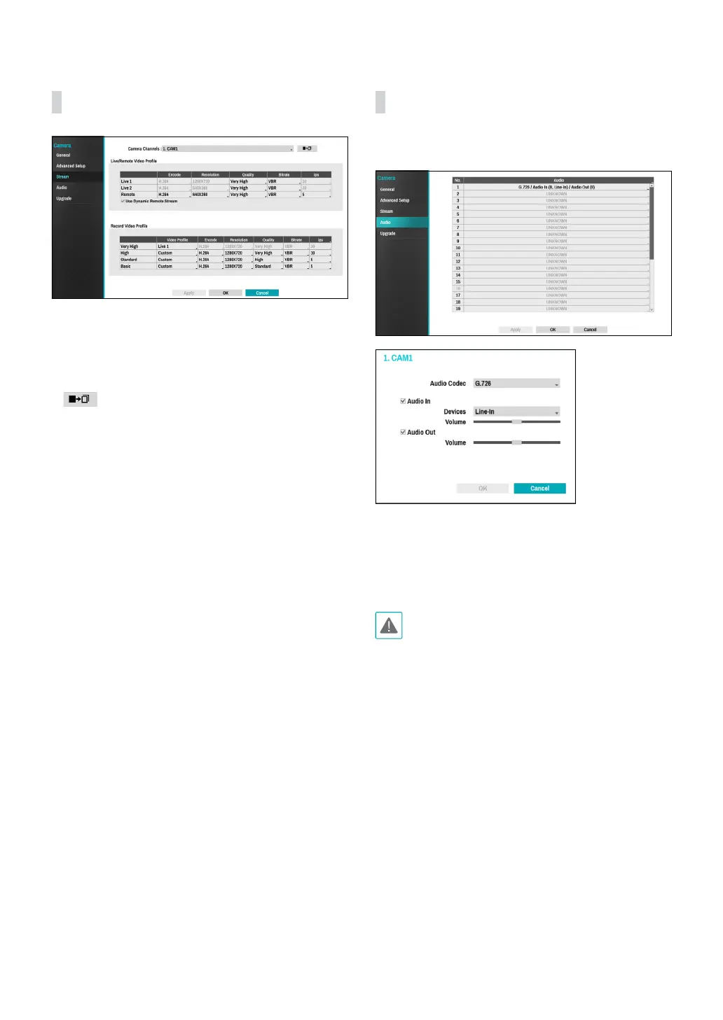 ● Video Prole: Select Live 1, Live 2, Remote, or