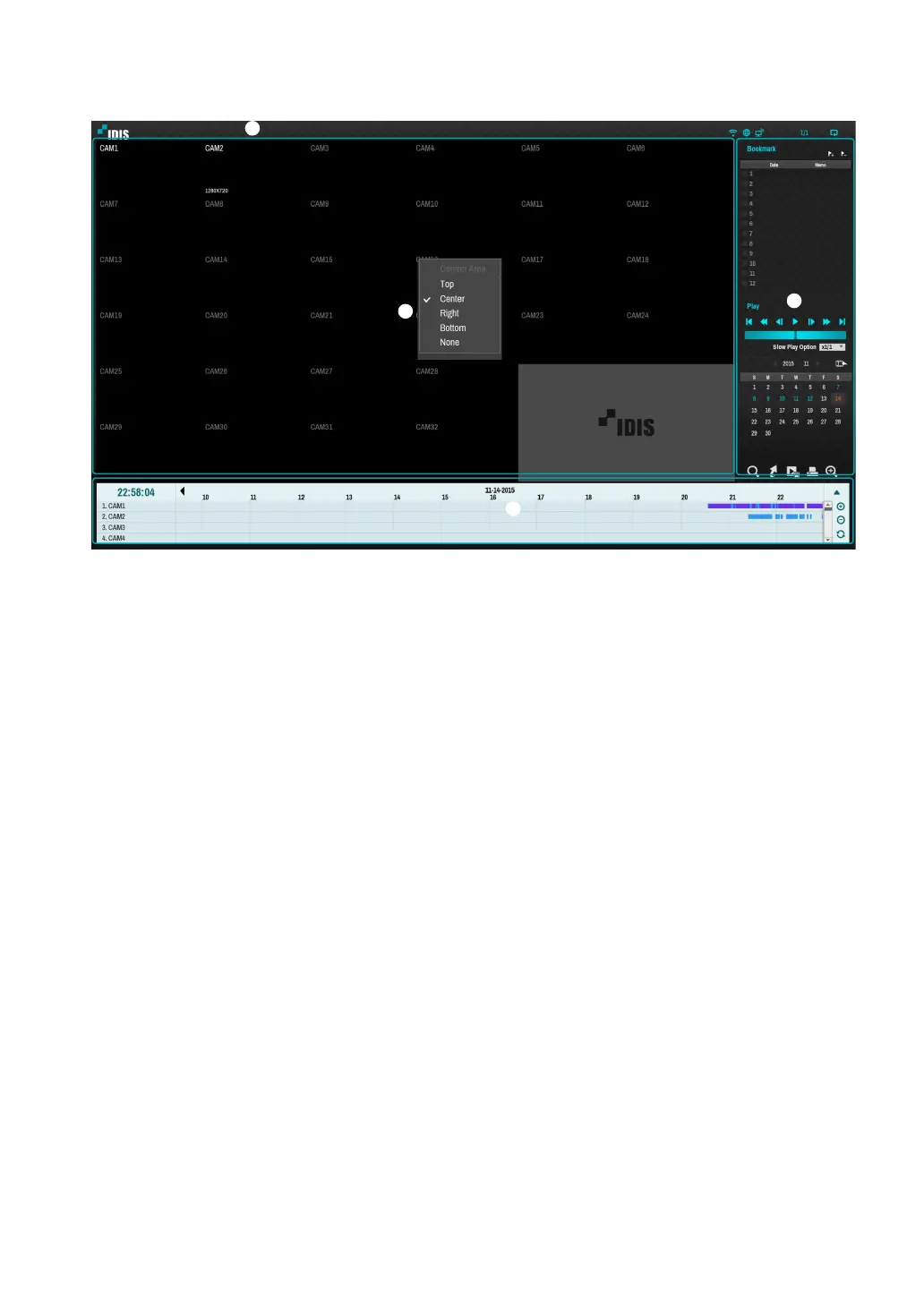3 Right: Activates the control buttons on the right. Use the arrow buttons to select Bookmark, Play, Calendar