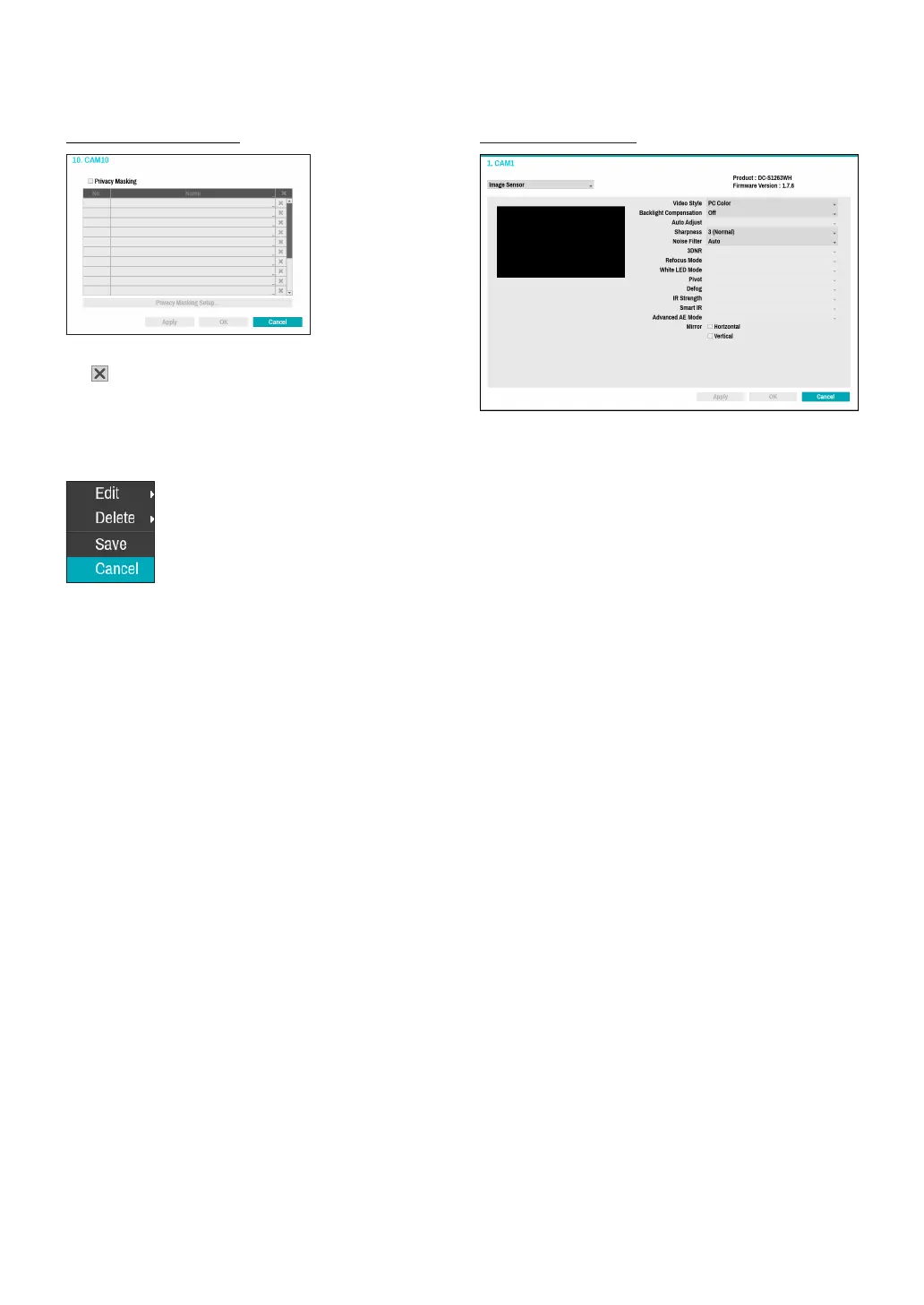 ● Delete: Delete the selected privacy masking area.
