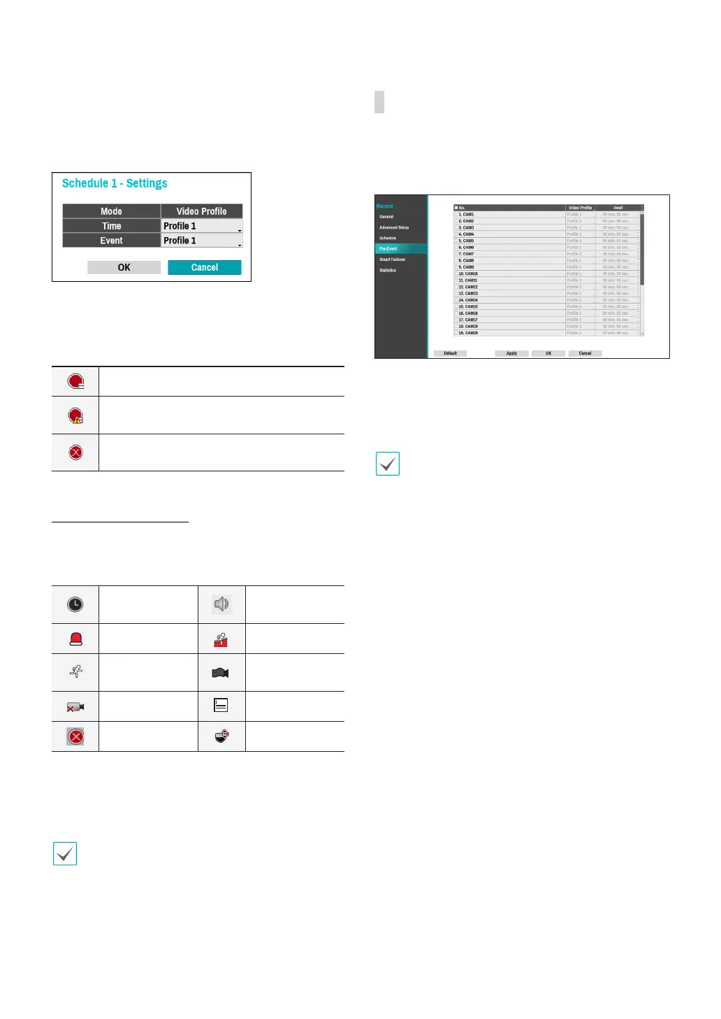 ● Dwell: Specify the duration of pre-event recording