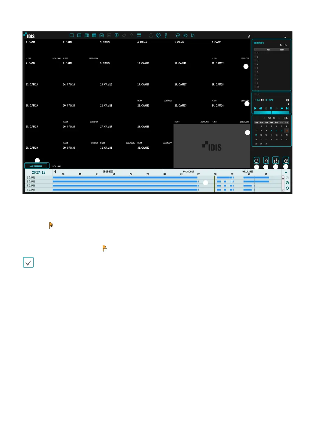 Select a bookmark from the Bookmark setup window on the right side of the Time-Lapse Search mode screen to move