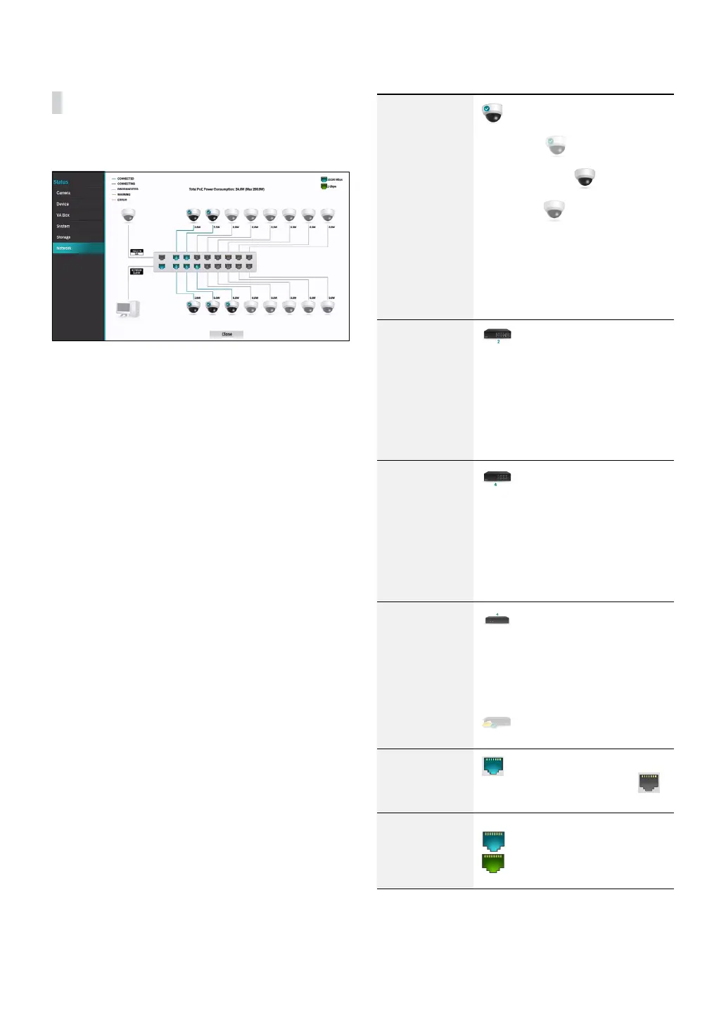 LAN port link status, power consumption, number of