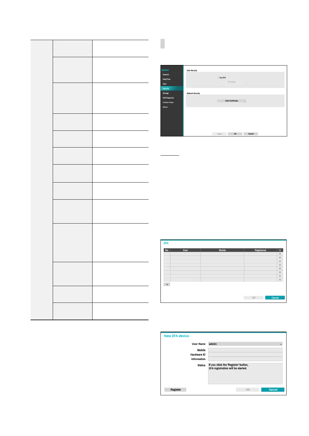Use this option to congure security settings.