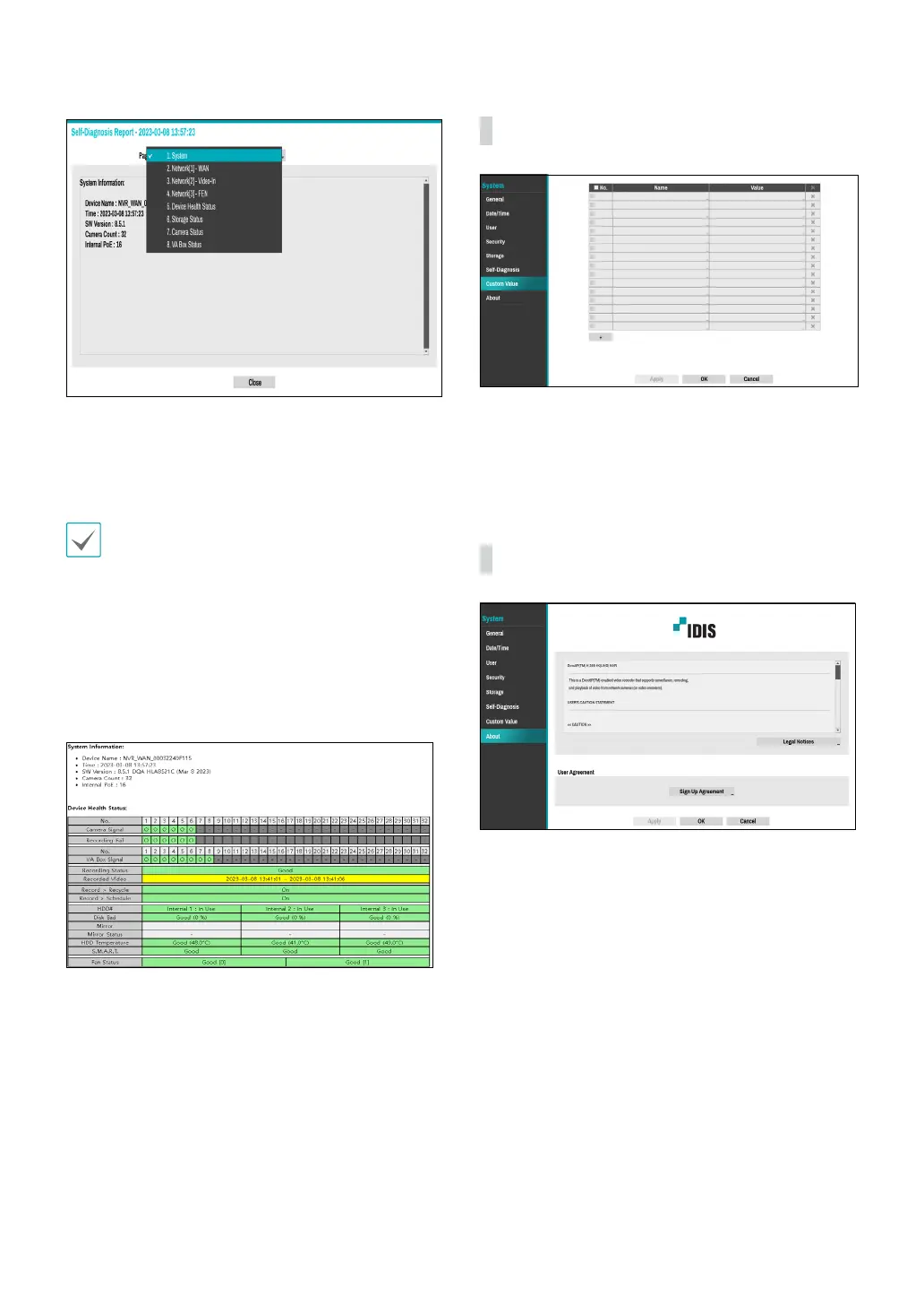 Network, Device Health Status, Storage Status,