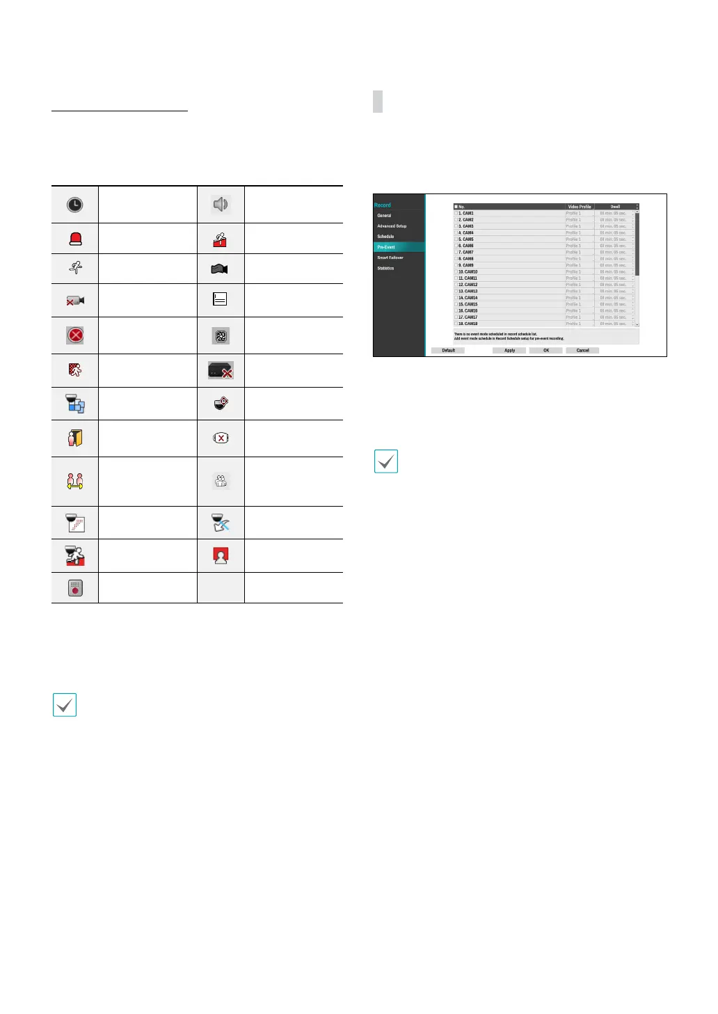 ● Dwell: Specify the duration of pre-event recording