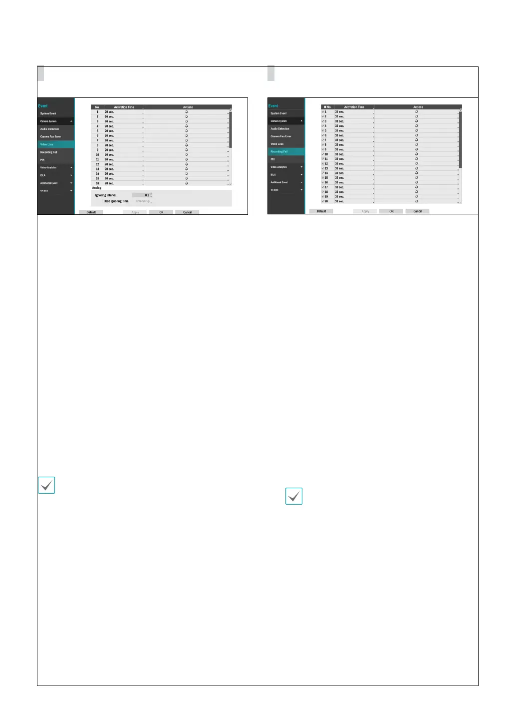 ● Activation Time: Specify how long video loss has