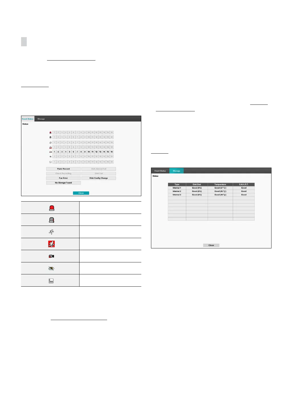 • Panic Record: Displays event status based on current